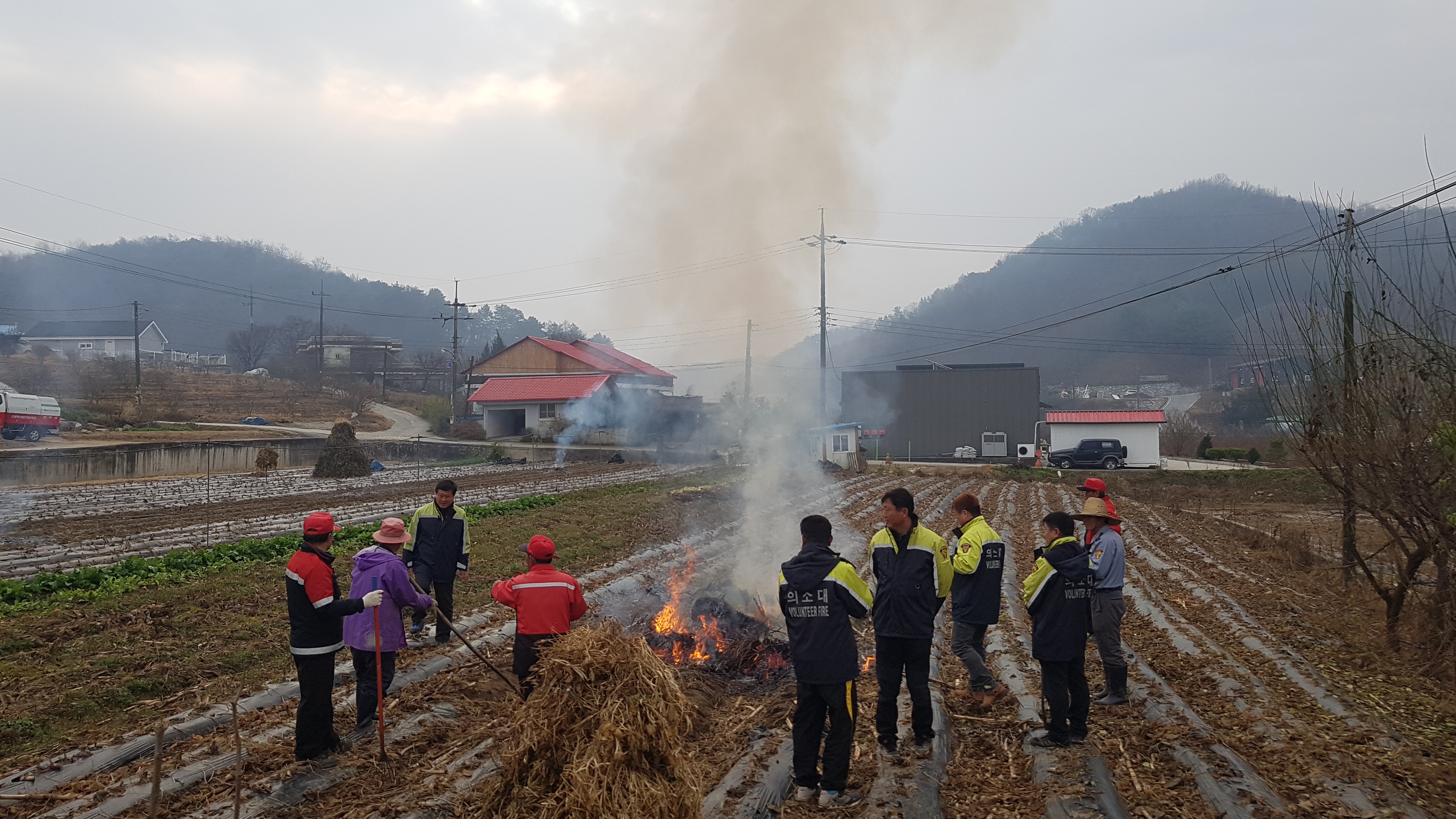 흥업면 사제2리 마을 논.밭두렁 태우기 및 쓰레기 태우기
