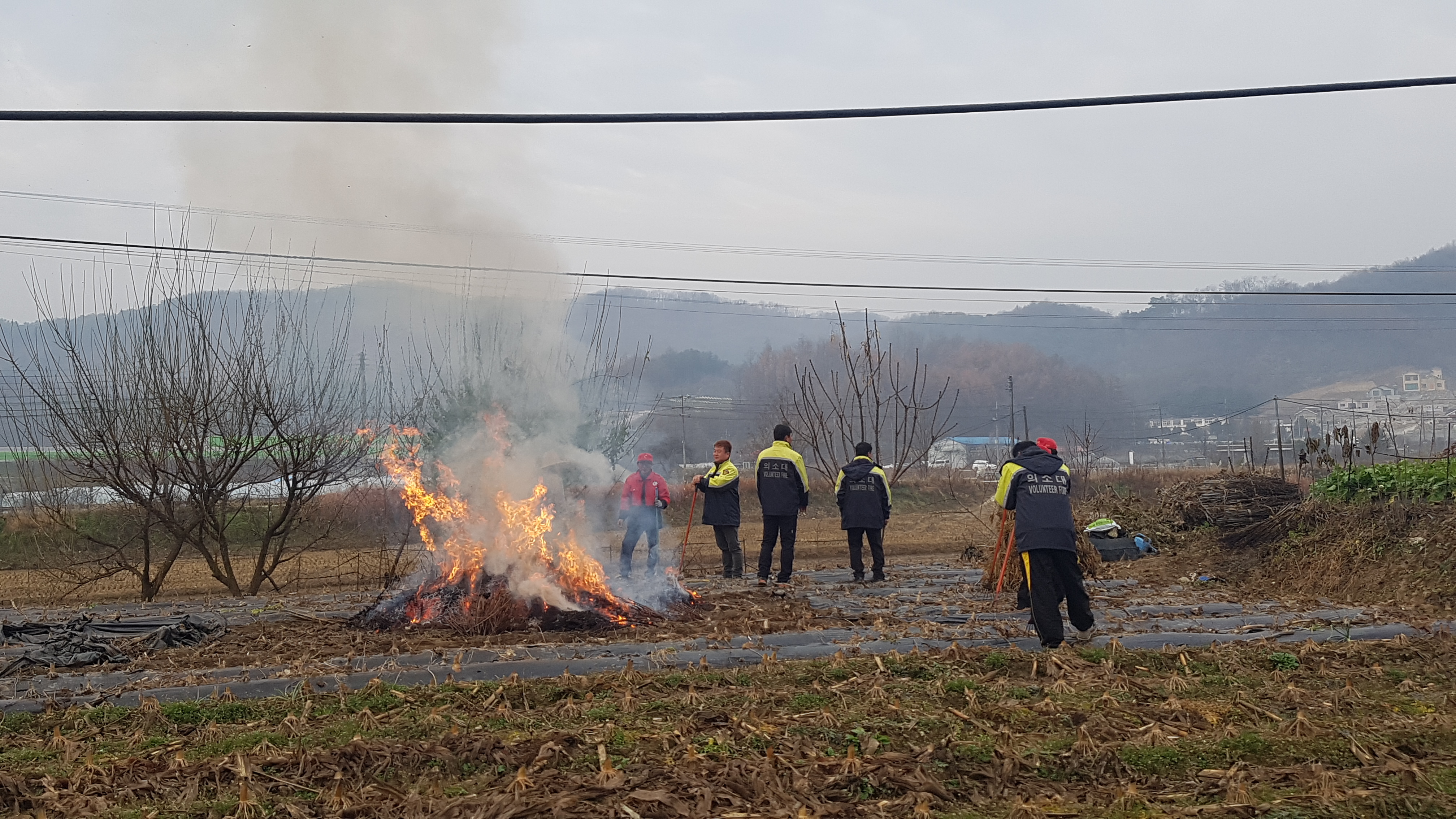 흥업남성의용소방대"사제2리 마을 논.밭두렁 소각물 태우기" 경계근무