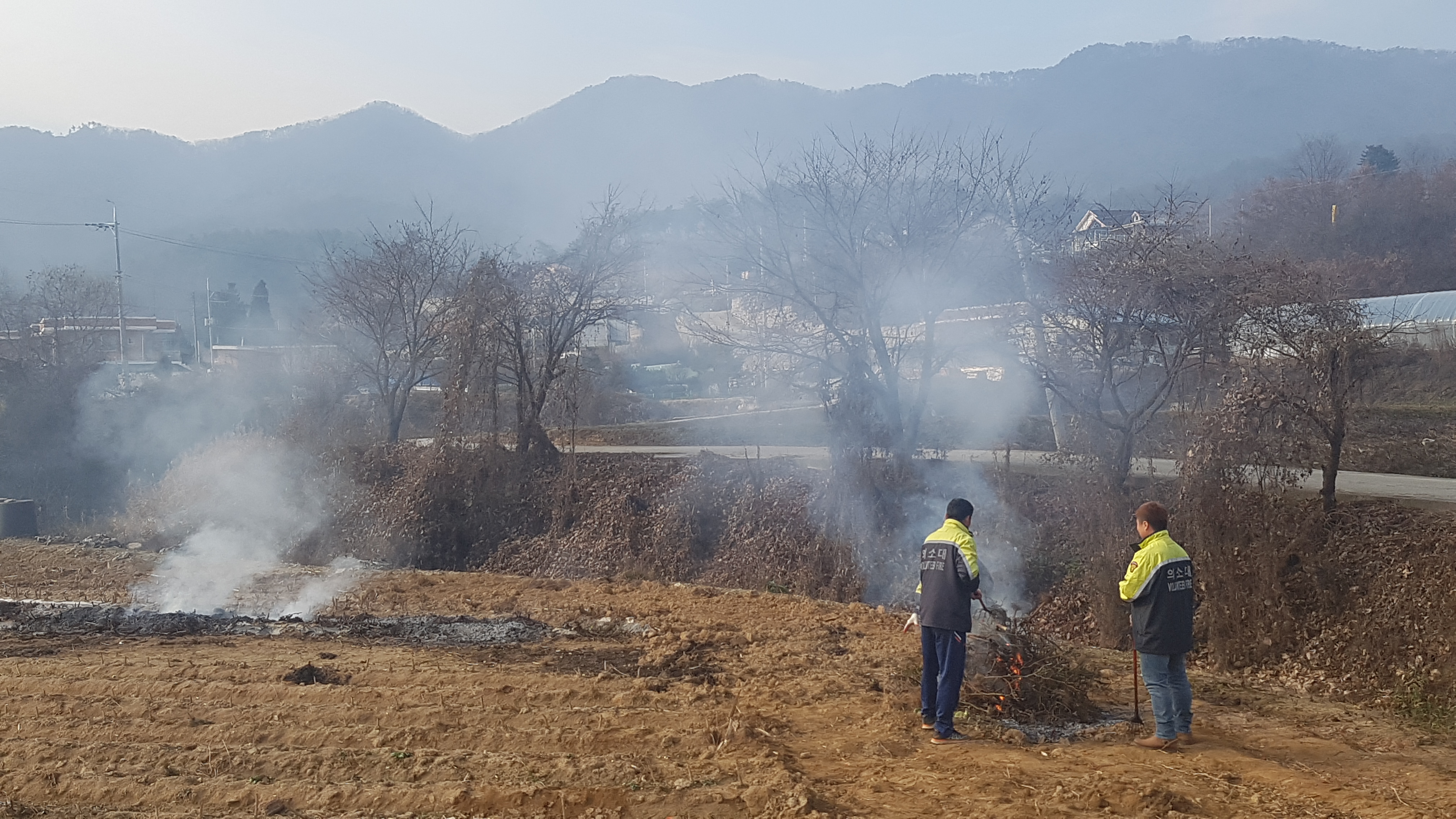 마을 논.밭두렁 농작물 태우는 장소를 이동하며