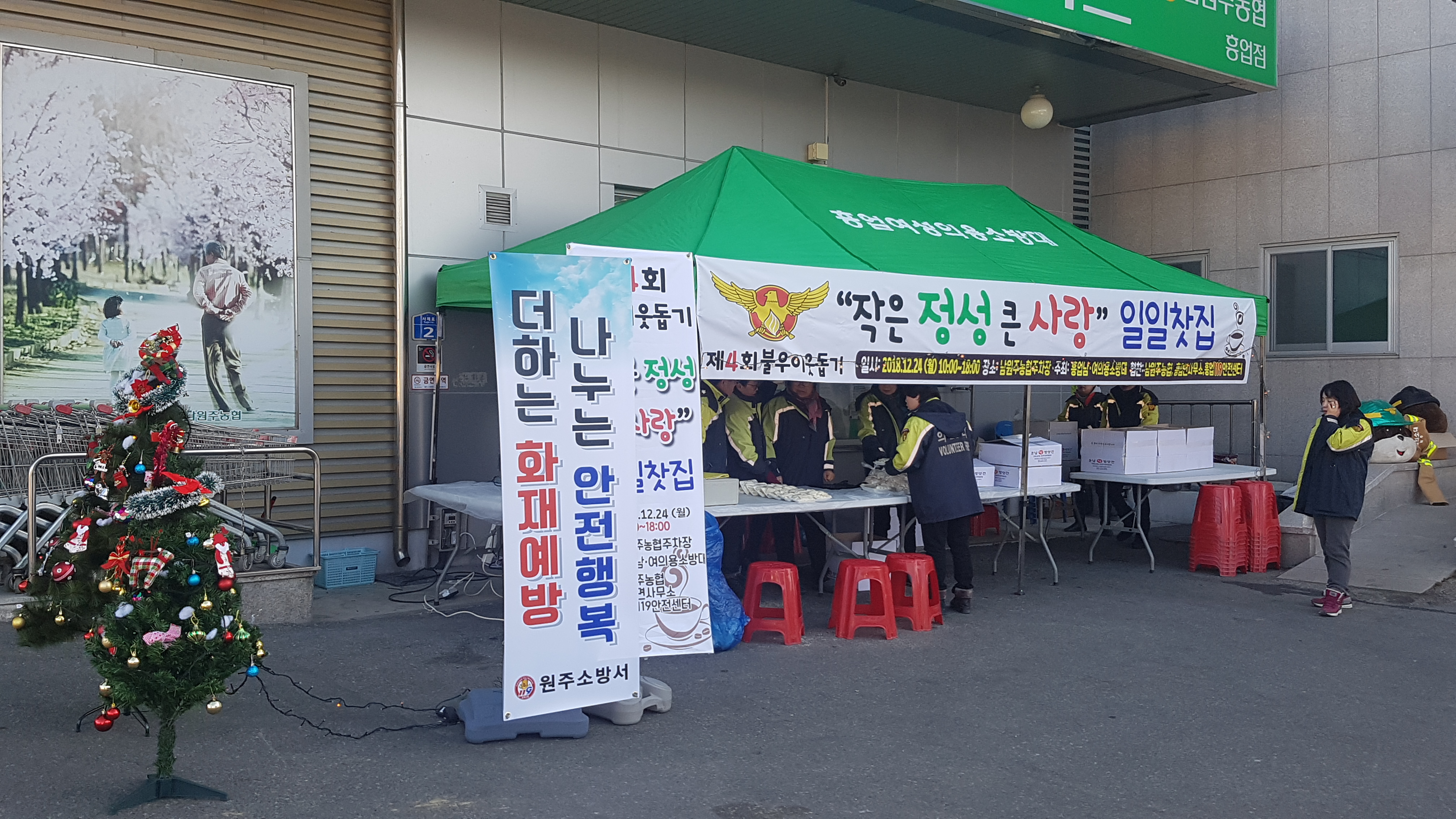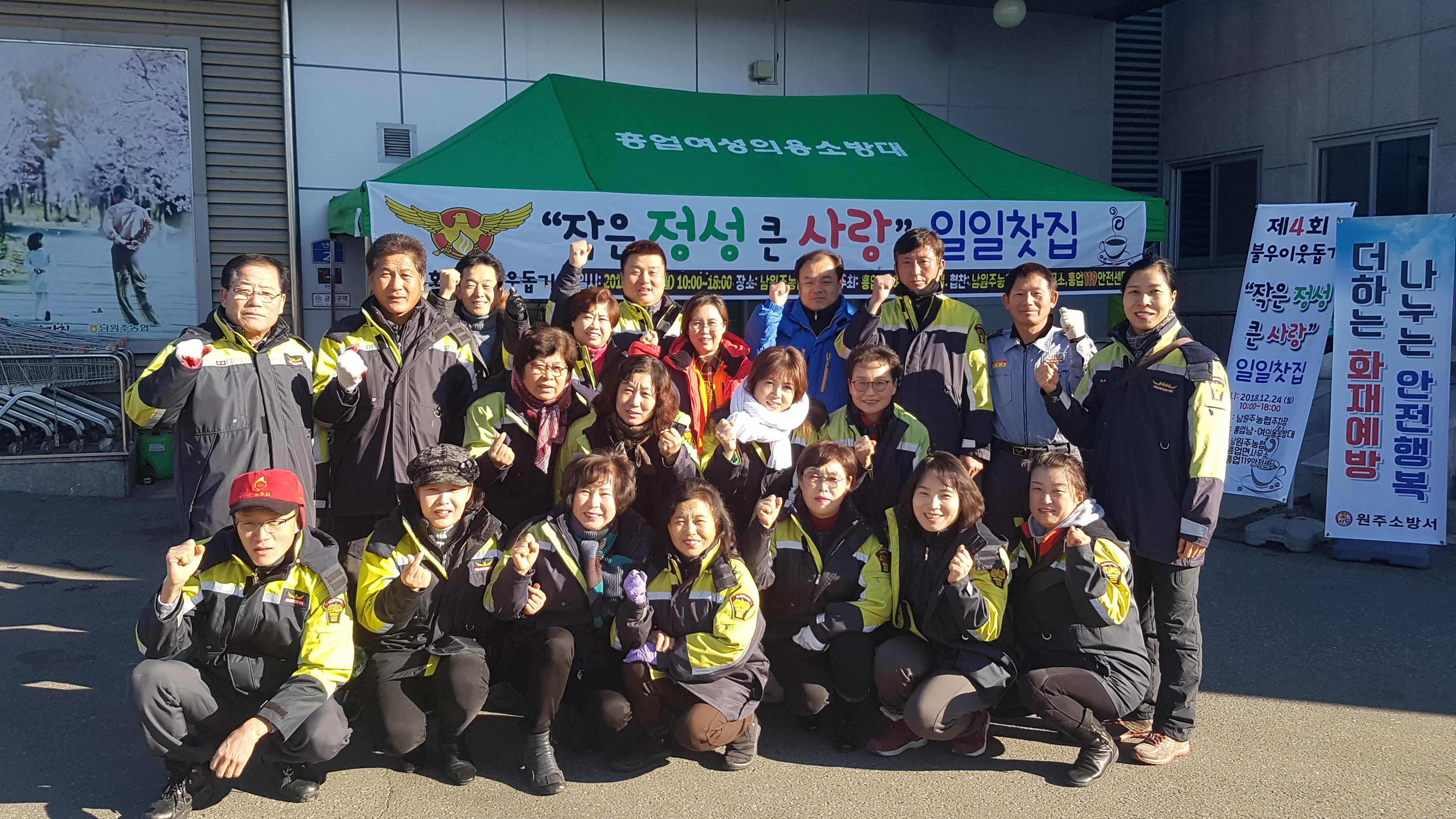 추운 날씨에도 불구하고 불우이웃돕기 행사에 임하는 대원분들에게
