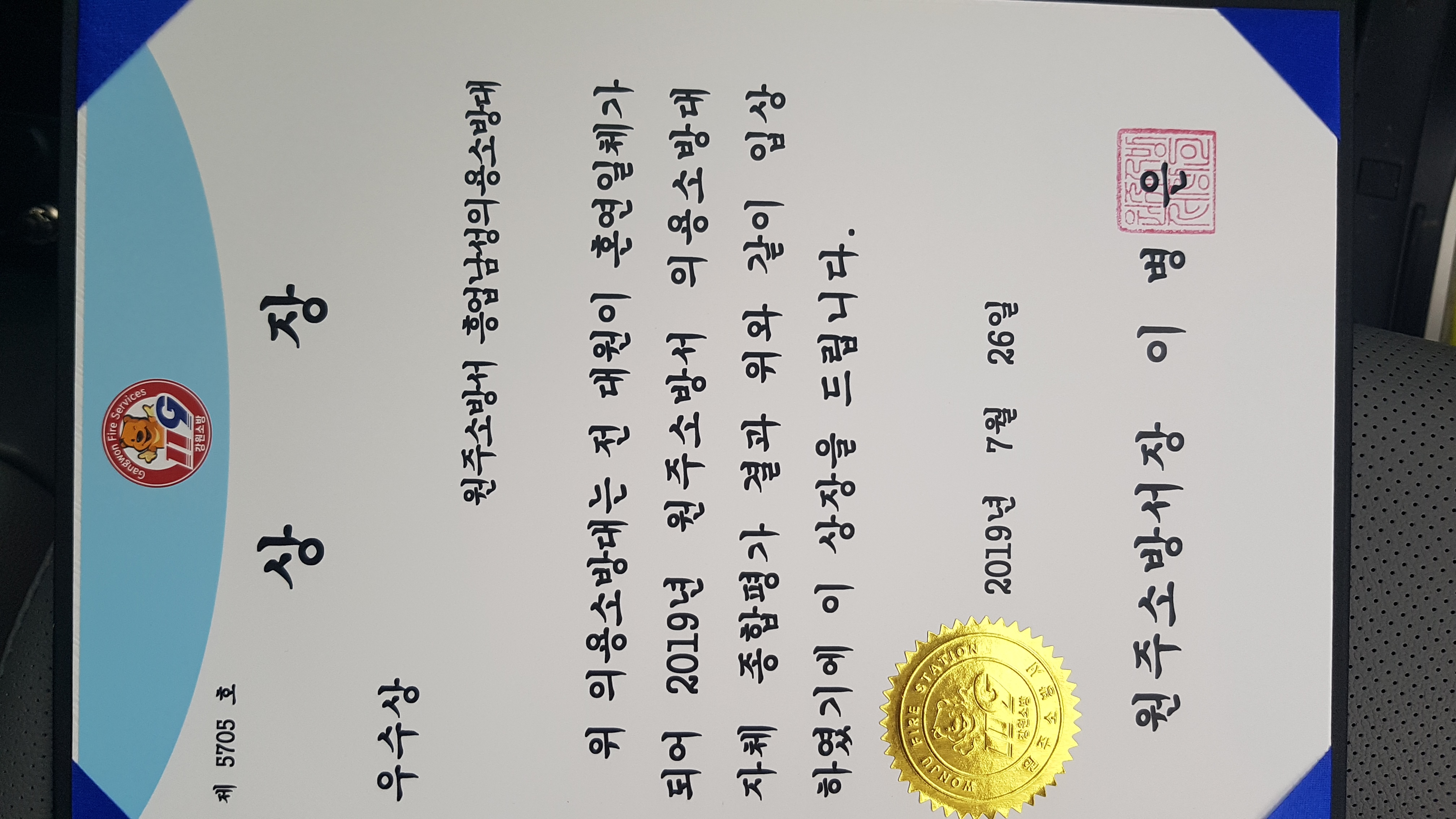" 2019년 의용소방대 종합평가 우수대 시상식 "