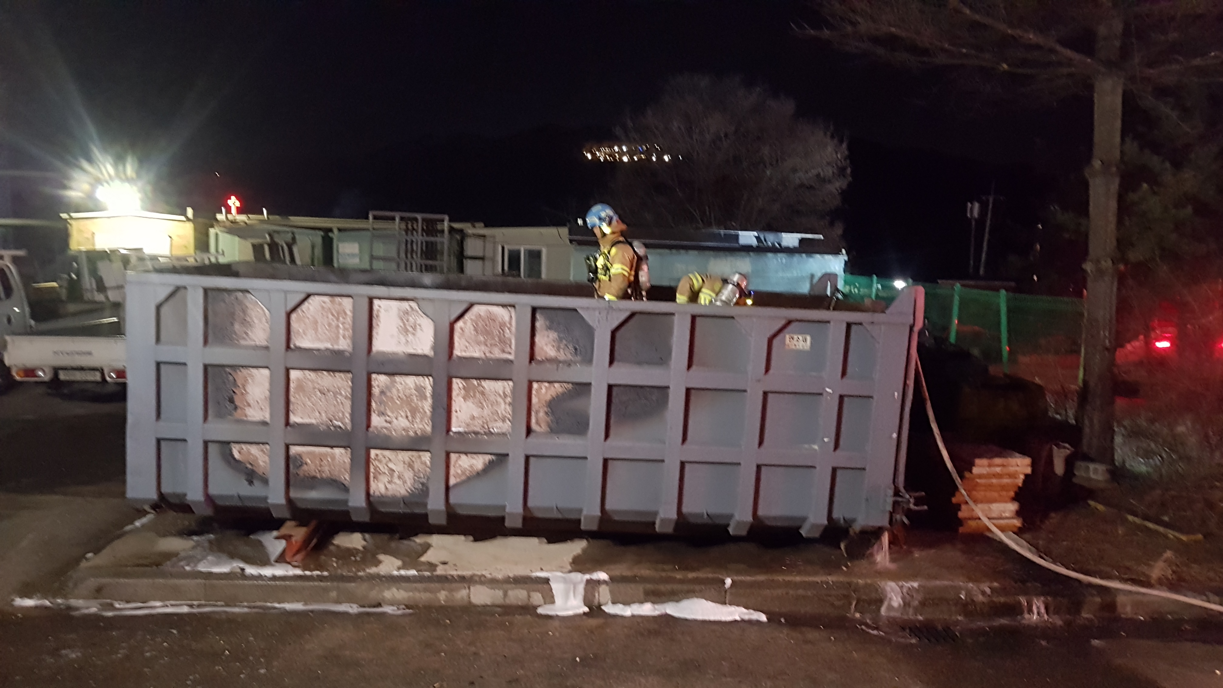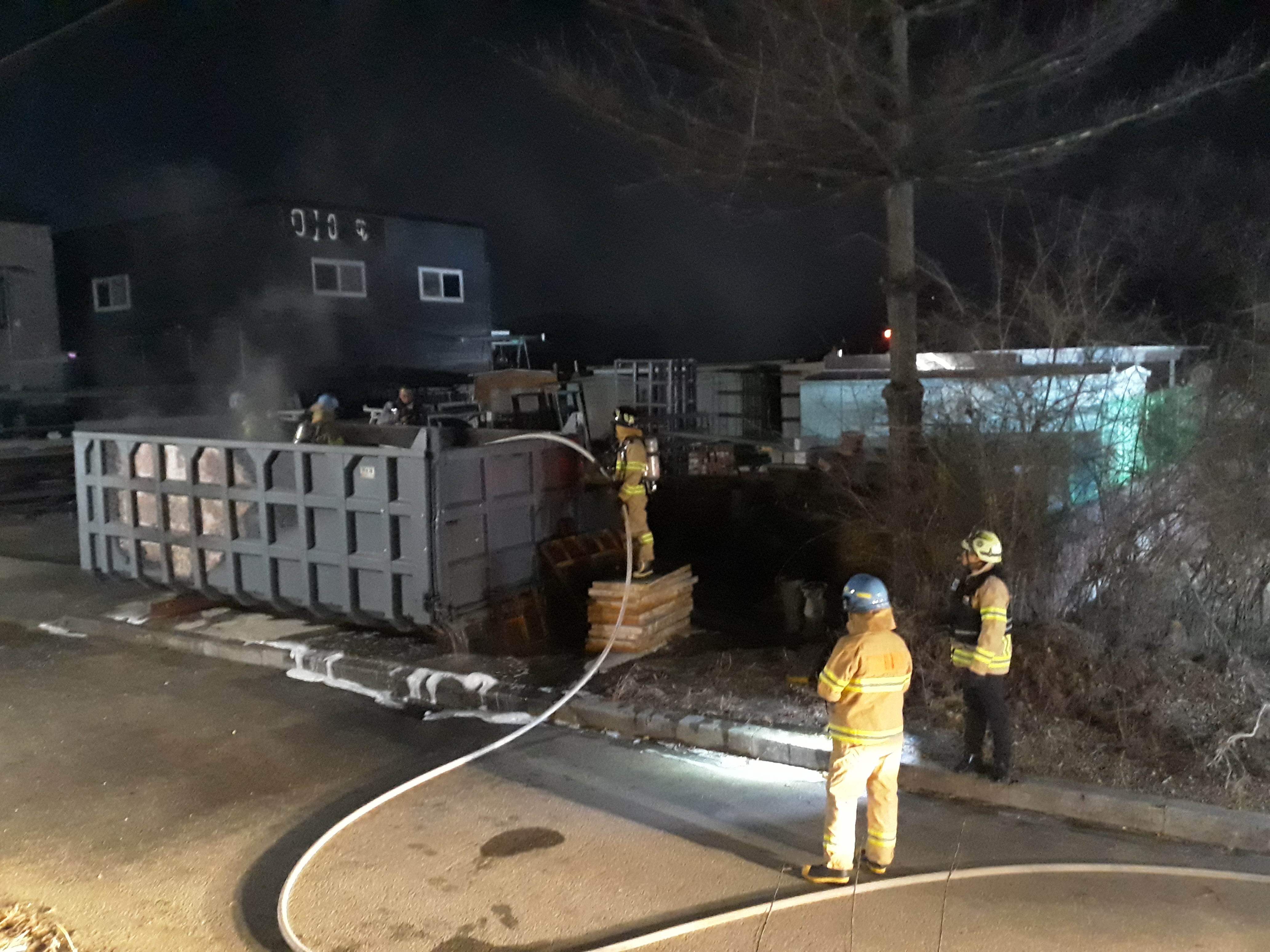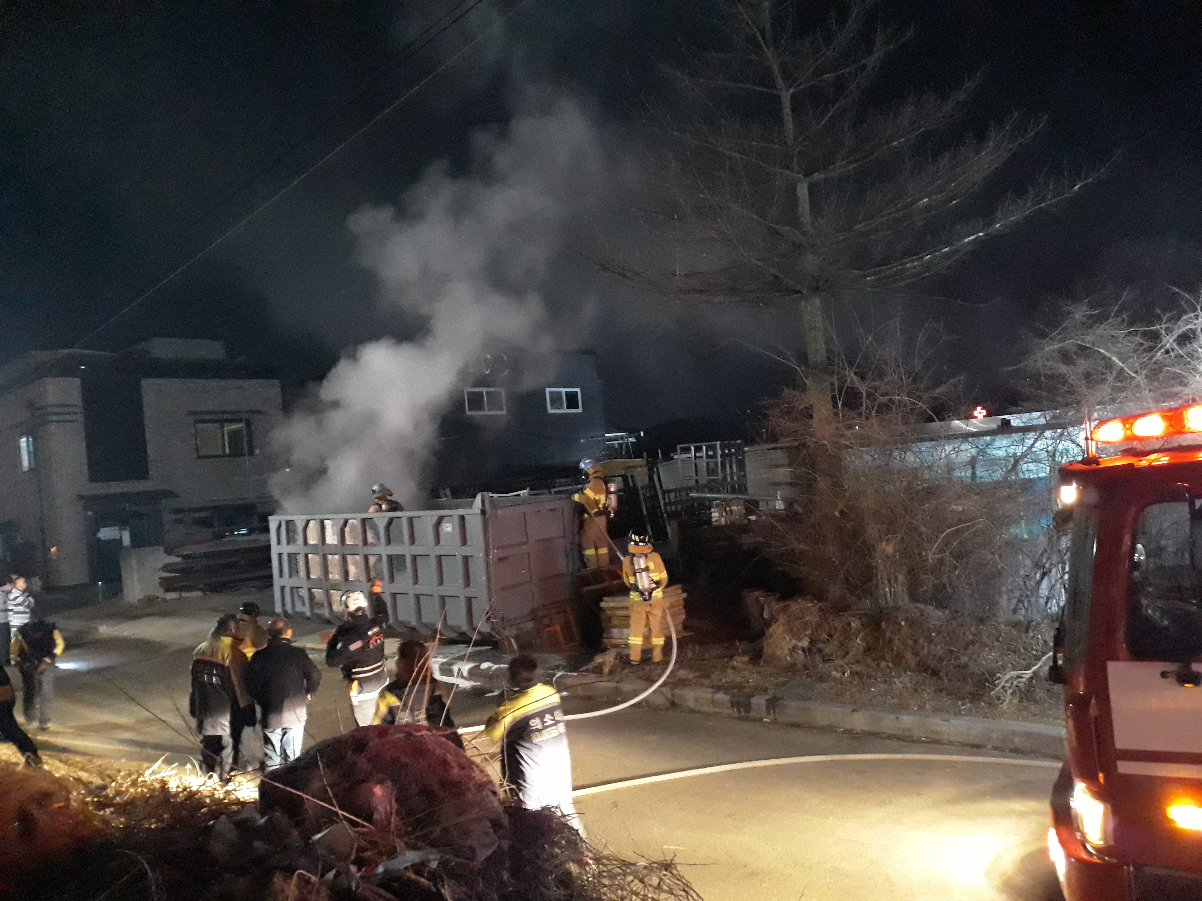 호저면 호저문화마을1길14 동진기업 폐기물 보관용 박스에서 화재 발생