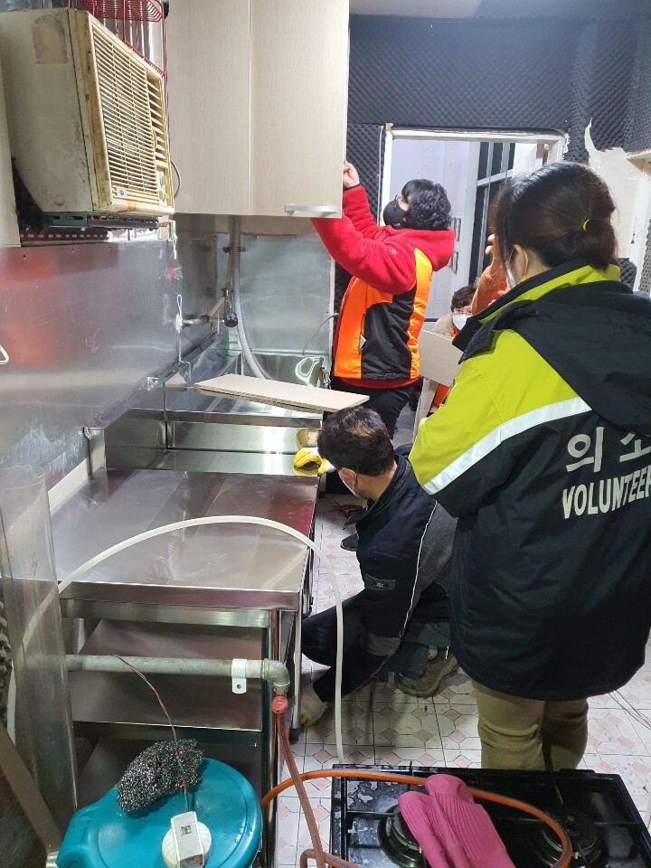 원주여성의소대"11월25일 미로시장 노인문화싸롱 씽크대교체봉사"