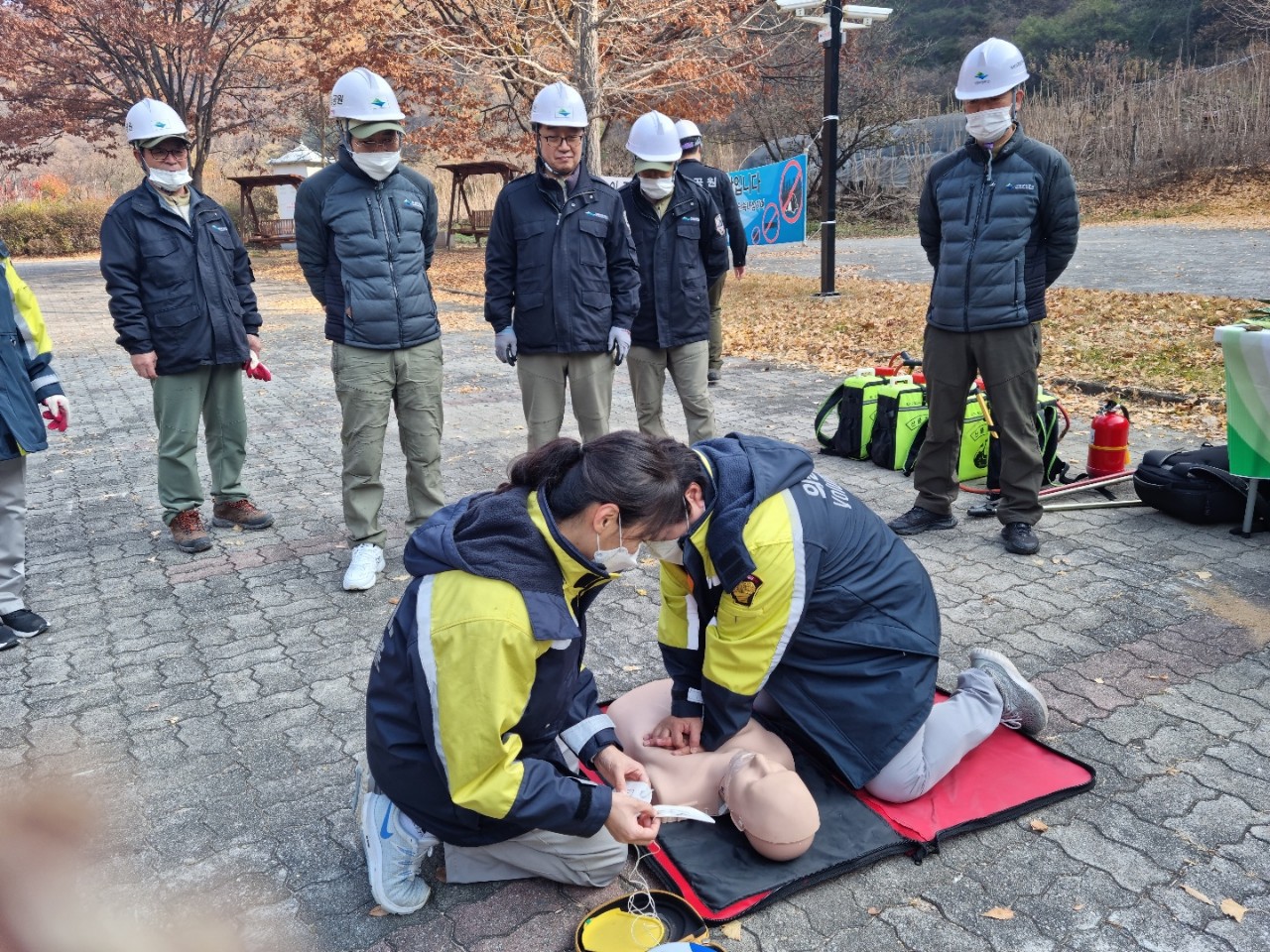 11월8일 오전10시부터 치악산 국립공원 금대분소와 합동으로 산불 진화훈련및 심펴소생술 교육을 실시하였습니다.
