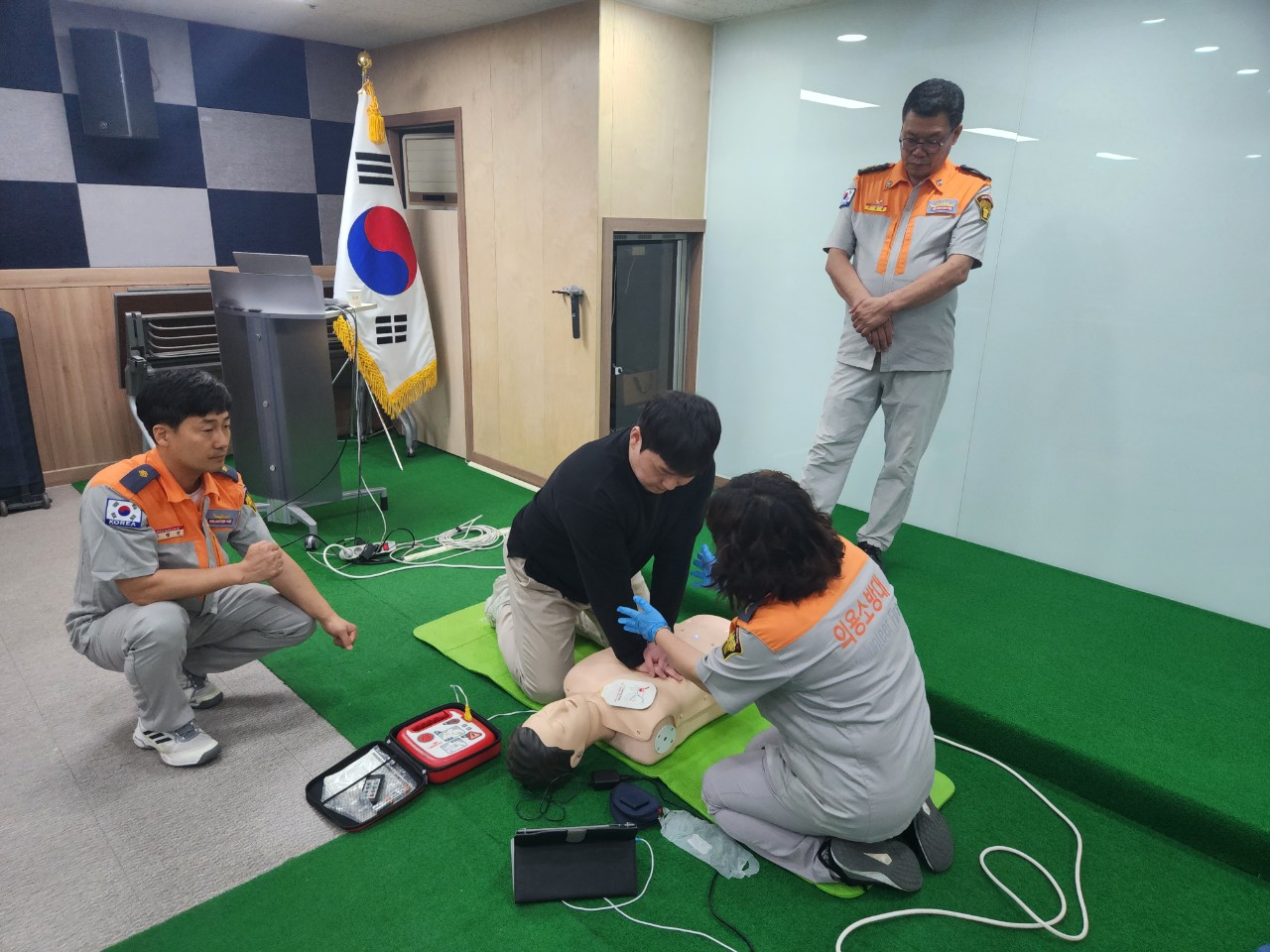 원주남성의용소방대 심폐소생술 및 소방대피훈련교육 ak백화점