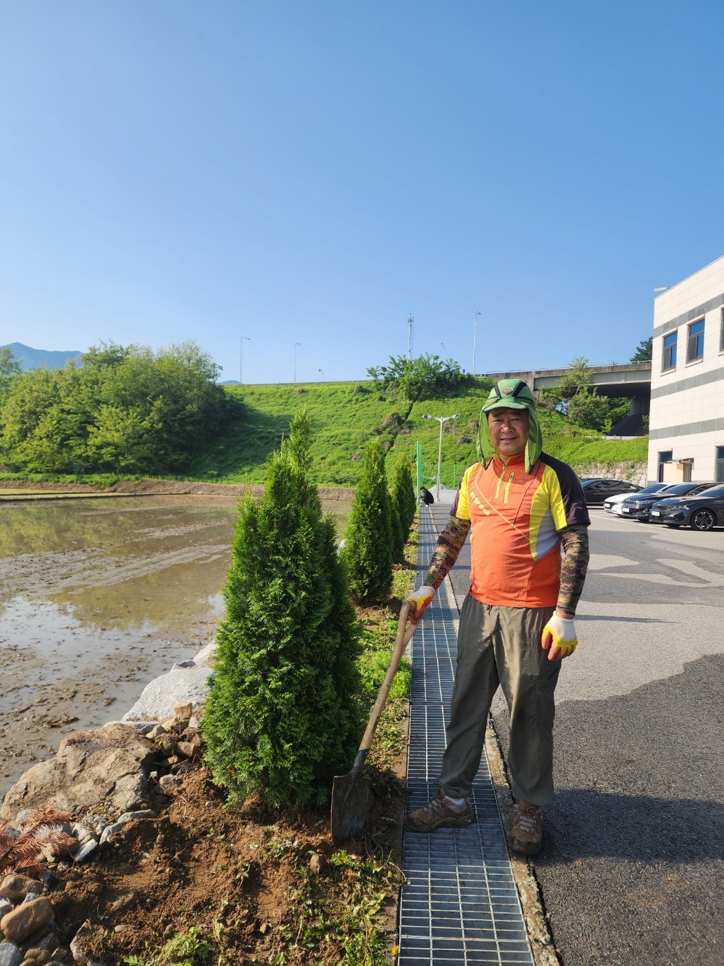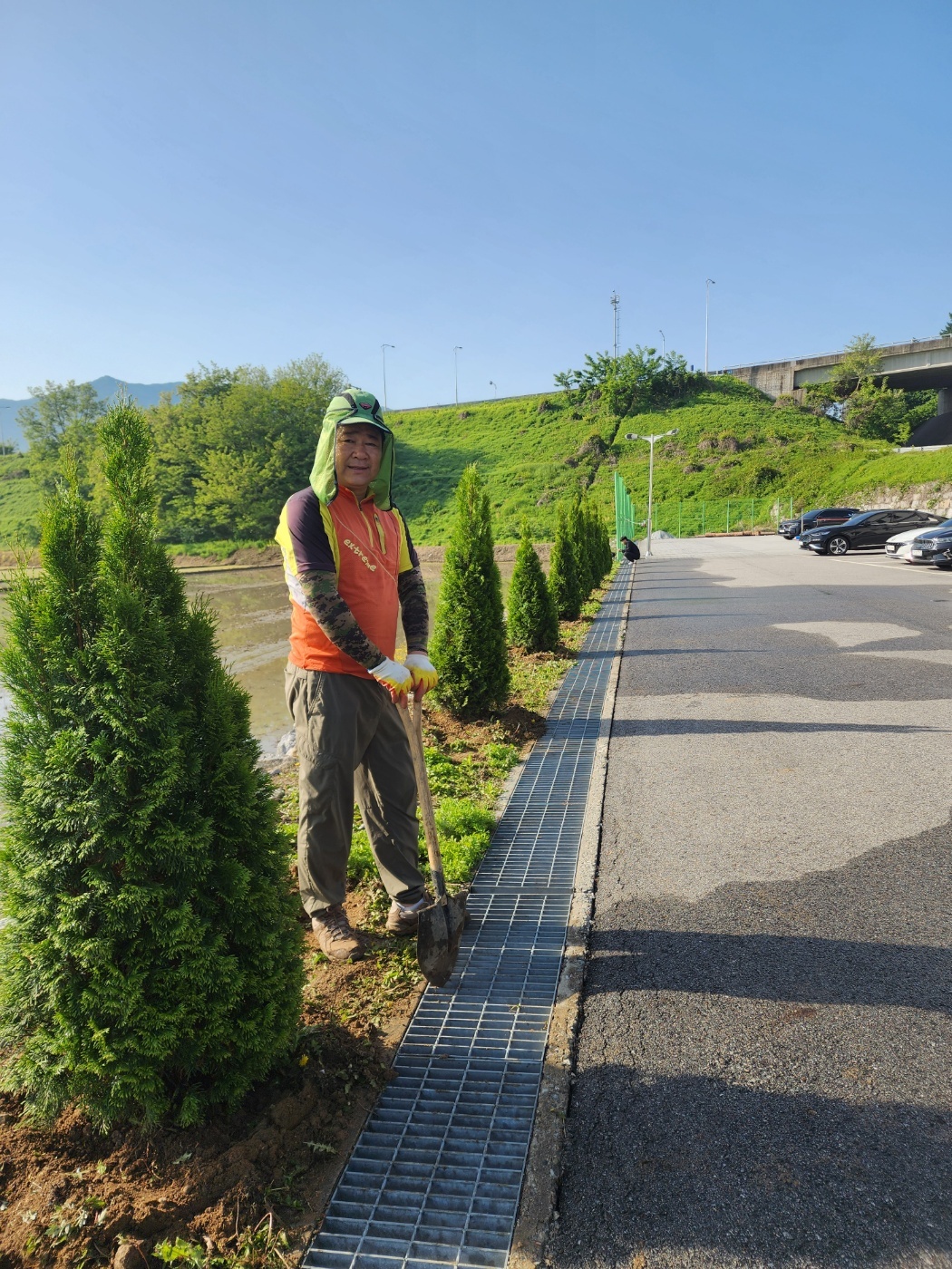 - 흥업119안전센터 주차장 앞 조경수 10그루(에메랄드그린)를 심었습니다.