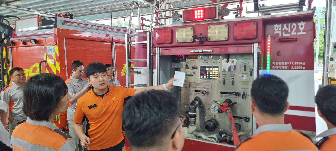 교육내용: 화재진압장비(소방펌프카) 교육 및 방수 실습