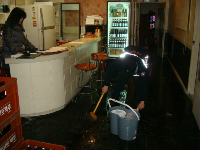 원주소방서 (서장 박창진) 우산119안전센터에서는 2011.01.18일 오후 19:30분경 소방검사 중 해당업체에 수도관 동파로 인한 누수사고를 발견하였습니다.
