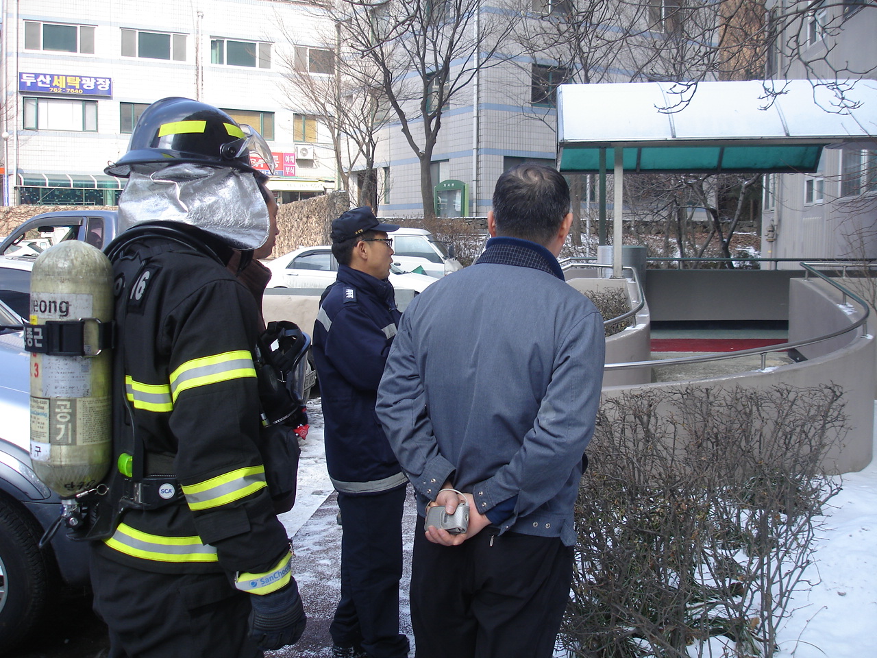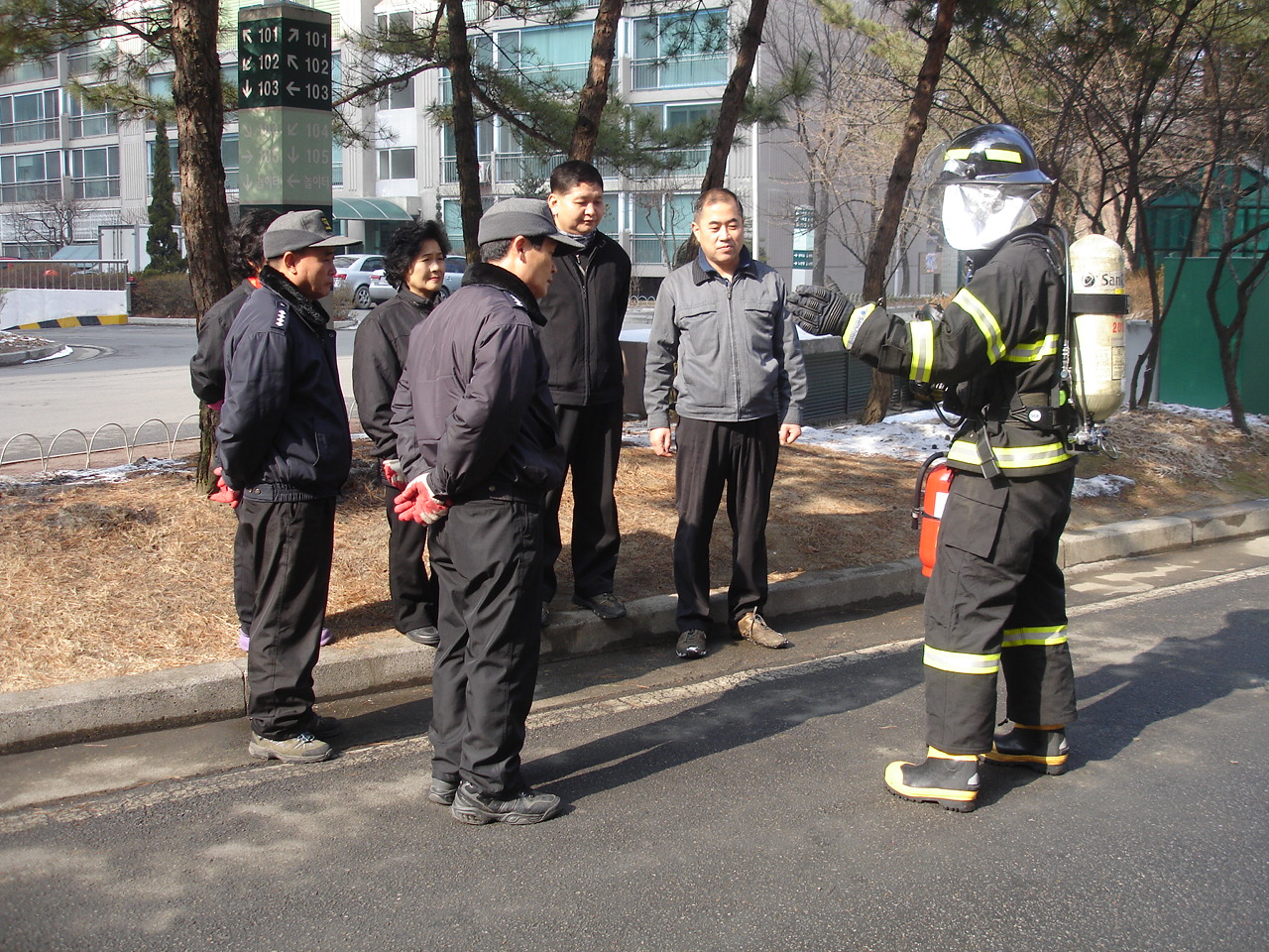 아파트 관계자분들을 모시고 소화기의 중요성 및 사용법, 관리요령들을 친절하게 설명해 드리고, 소화용수설비의 필요성,유지관리 방법도 설명해 드렸습니다.