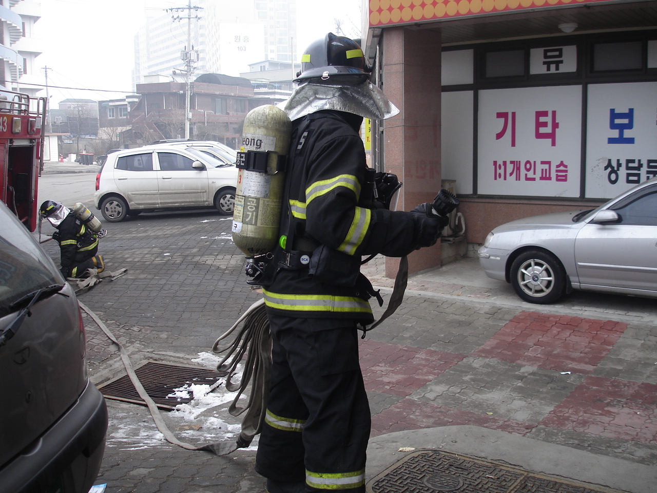 금일 훈련은 가상화점을 부여해 신속한 출동으로 인명대피유도 및 가상화점에 집중방수하여 초기화재진압에 목적을 둔 훈련입니다.