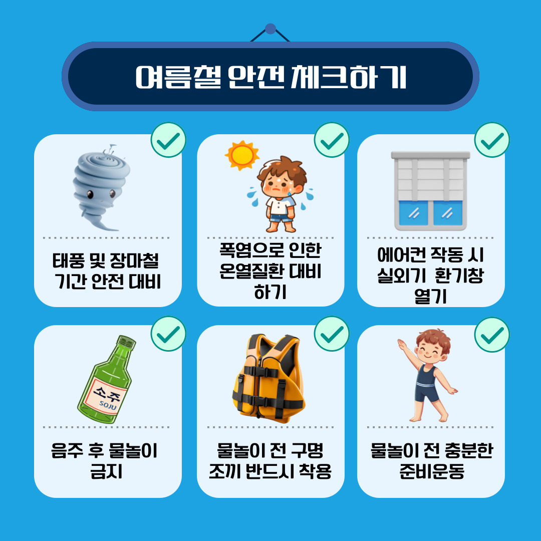 □ 여름철은 야외 활동과 휴가철로 인해 각종 사고가 빈번하게 발생하는 시기인 만큼, 시민들의 안전의식을 높이기 위해 집중 홍보에 나선다.