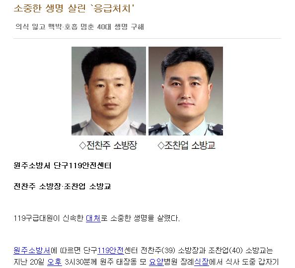 | 1674 | 훌륭합니다. 존경합니다. | 단구119안전센터 | 2011-02-26 | 434 |