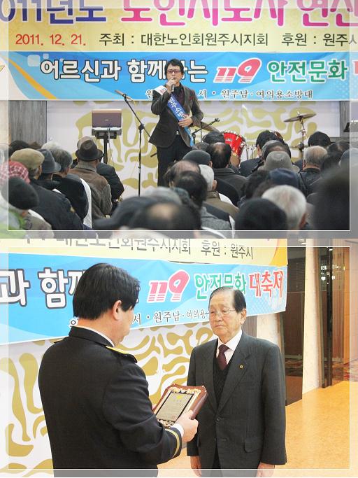 원주소방서(서장 김시균)는 21일 원주웨딩홀에서 대한노인회 원주시지부 회장단 600여명을 모시고 119 안전문화대축제를 개최했다.