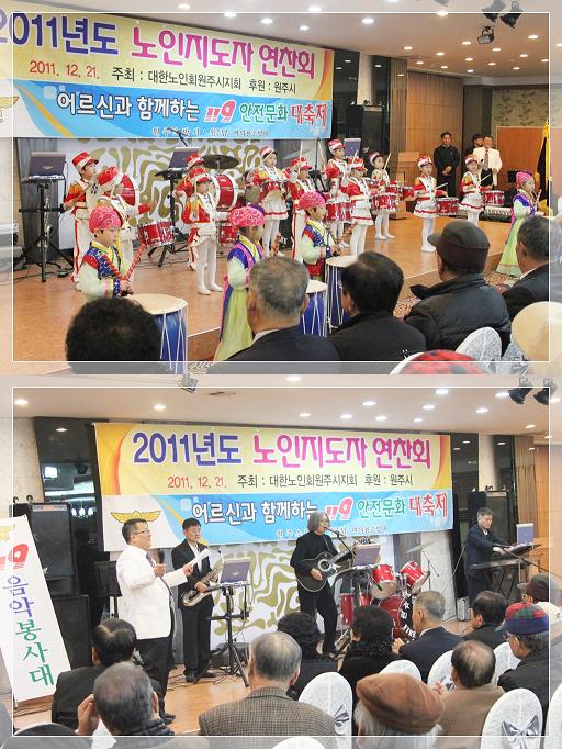 행사는 1부 위문공연으로 전국소방동요대회 대상을 차지한 영지유치원의 공연을 시작으로 119밴드 공연, 아코디언 연주, 36사 군악대 공연, 2011년 원주소방서 홍보대사인 가수 안혁을 초청 공연을 가졌다.