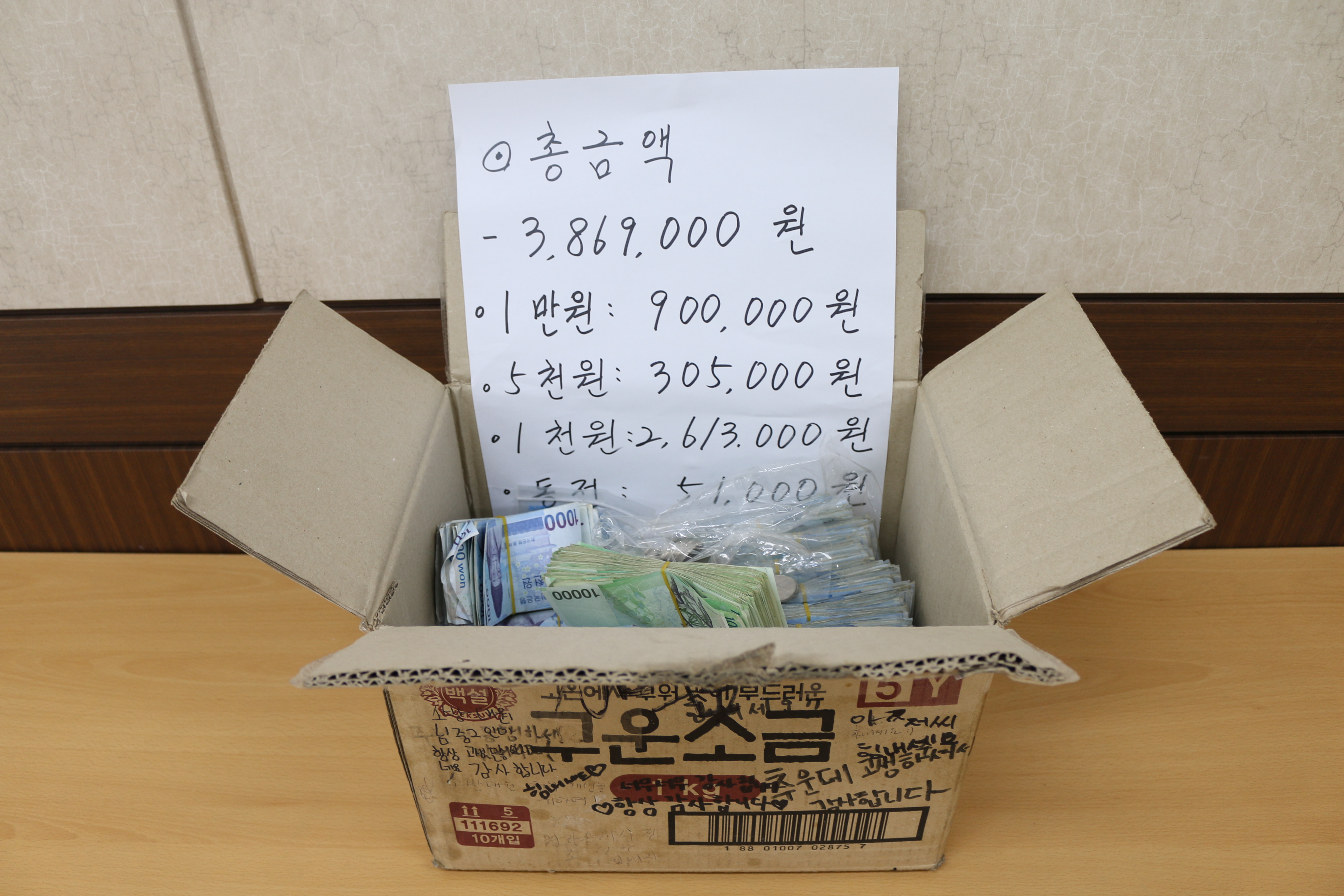 원주소방서(서장 이병은)는 지난 1월 26일 익명의 기부자로부터 386만원 상당의 현금이 든 기부 상자를 받았다고 전했다.
