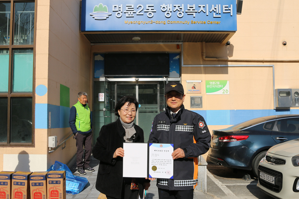 명륜2동 15통 마을을 대상으로 주택용 소방시설(소화기, 주택화재경보기) 설치율 100% 마을 인증제도인 ‘세이프타운’ 인증식을 진행했다.