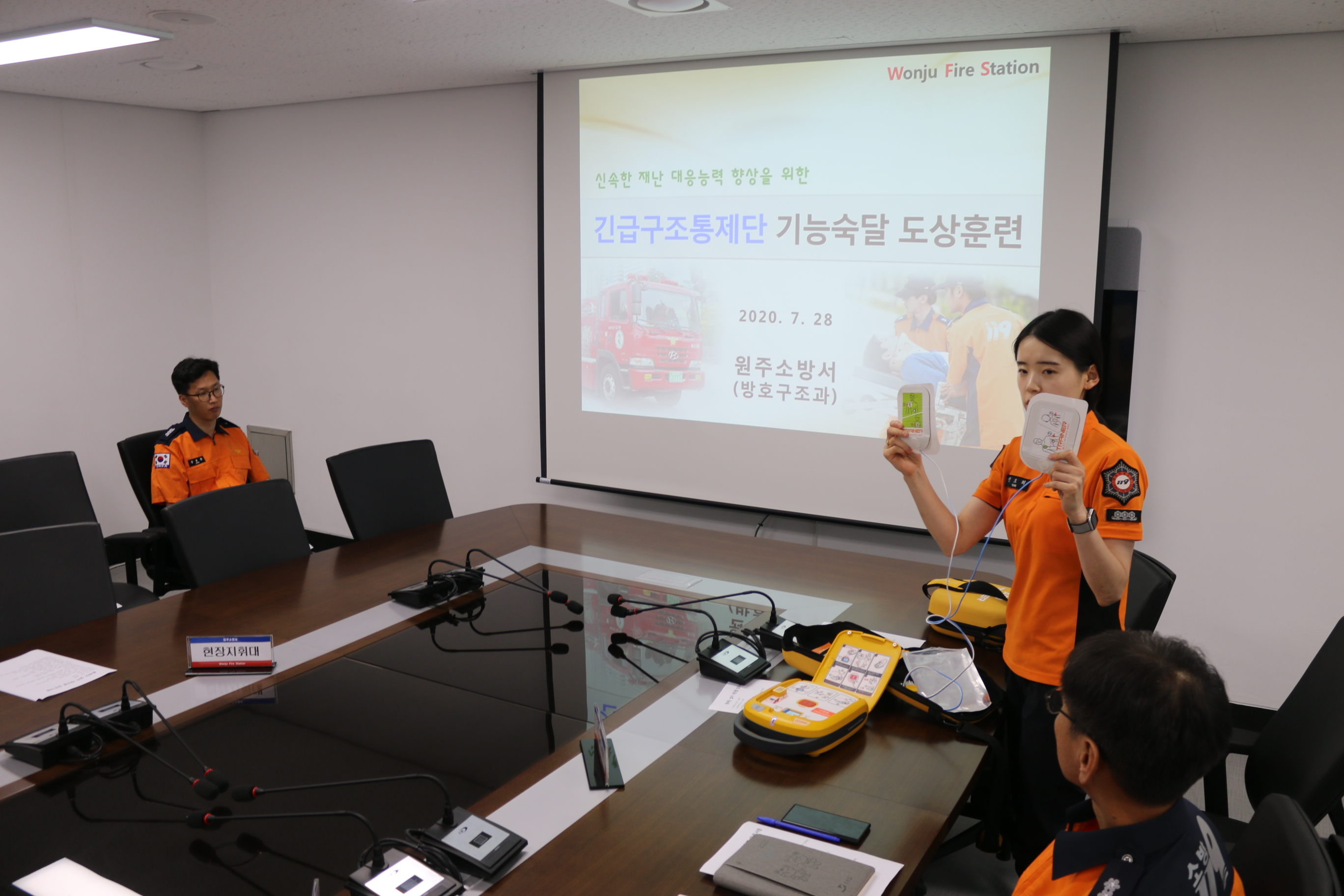 원주소방서는 28일 본서 소회의실에서 긴급구조통제단 가동 기능숙달 도상훈련을 진행했습니다.