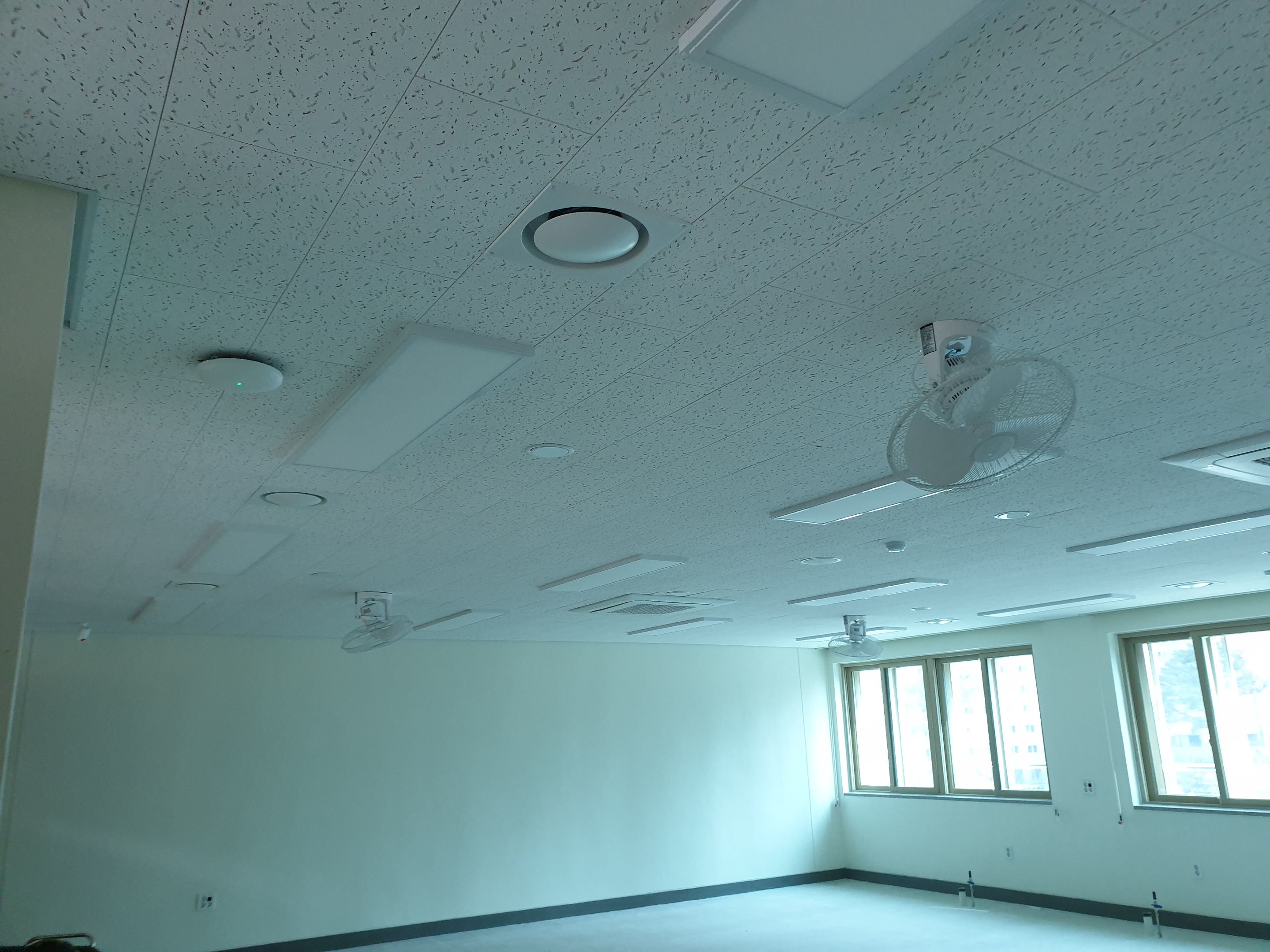 새로 신설된 초등학교인데 복도에는 소화전과 소화기가 설치 및 비치되어있는데 교실, 연구실, 복도 등 기타 실내 천정에 스프링쿨러가 없는것을 봤습니다. 화재감지기는 설치되어 있는데 스프링쿨러만 없었습니다.