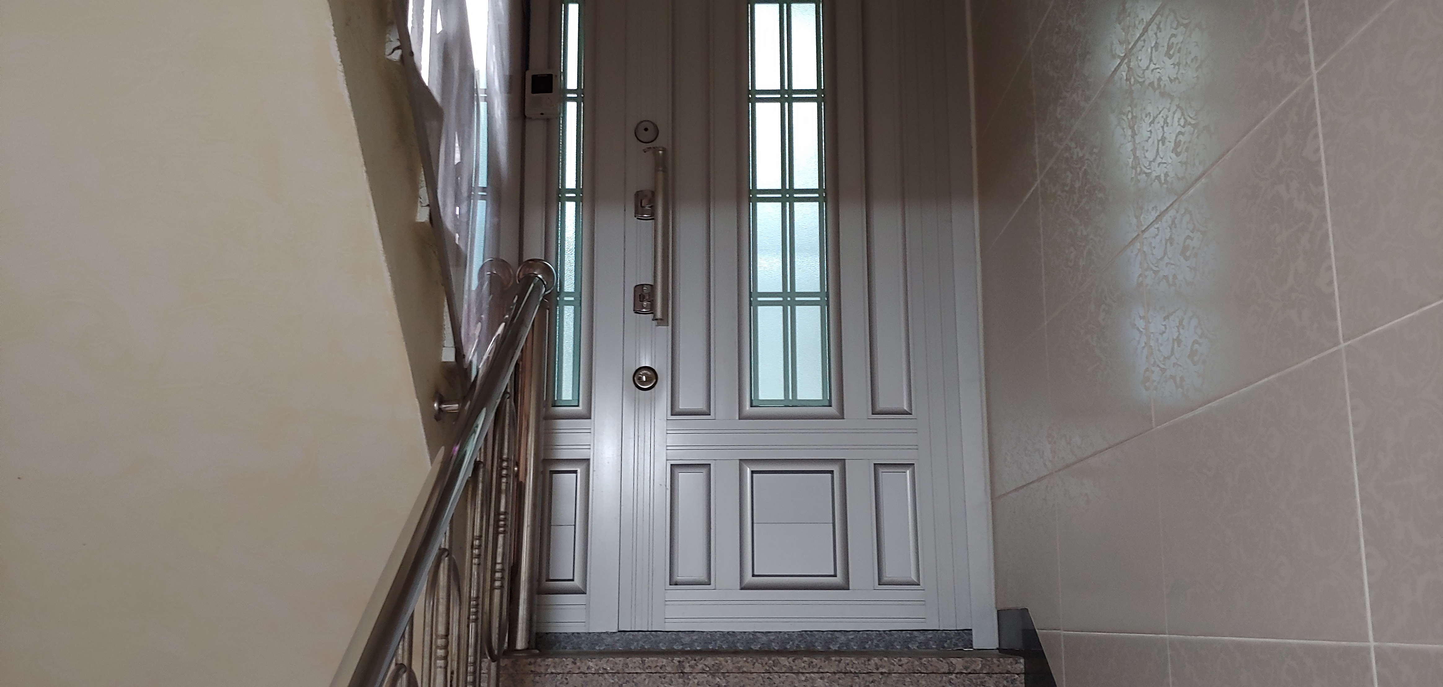 3층-4층 올라가는 계단에 4층 거주자가 샷시문을 설치하고 잠가 놓고 있습니다.