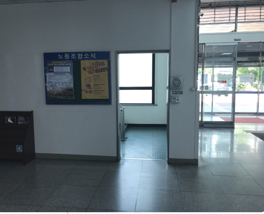2. (사진참고) 계단에서 1층 건물 로비로 들어오는 곳입니다. 해당 건물은 4층 건물인데,, 1층에 방화문이 설치되어 있지