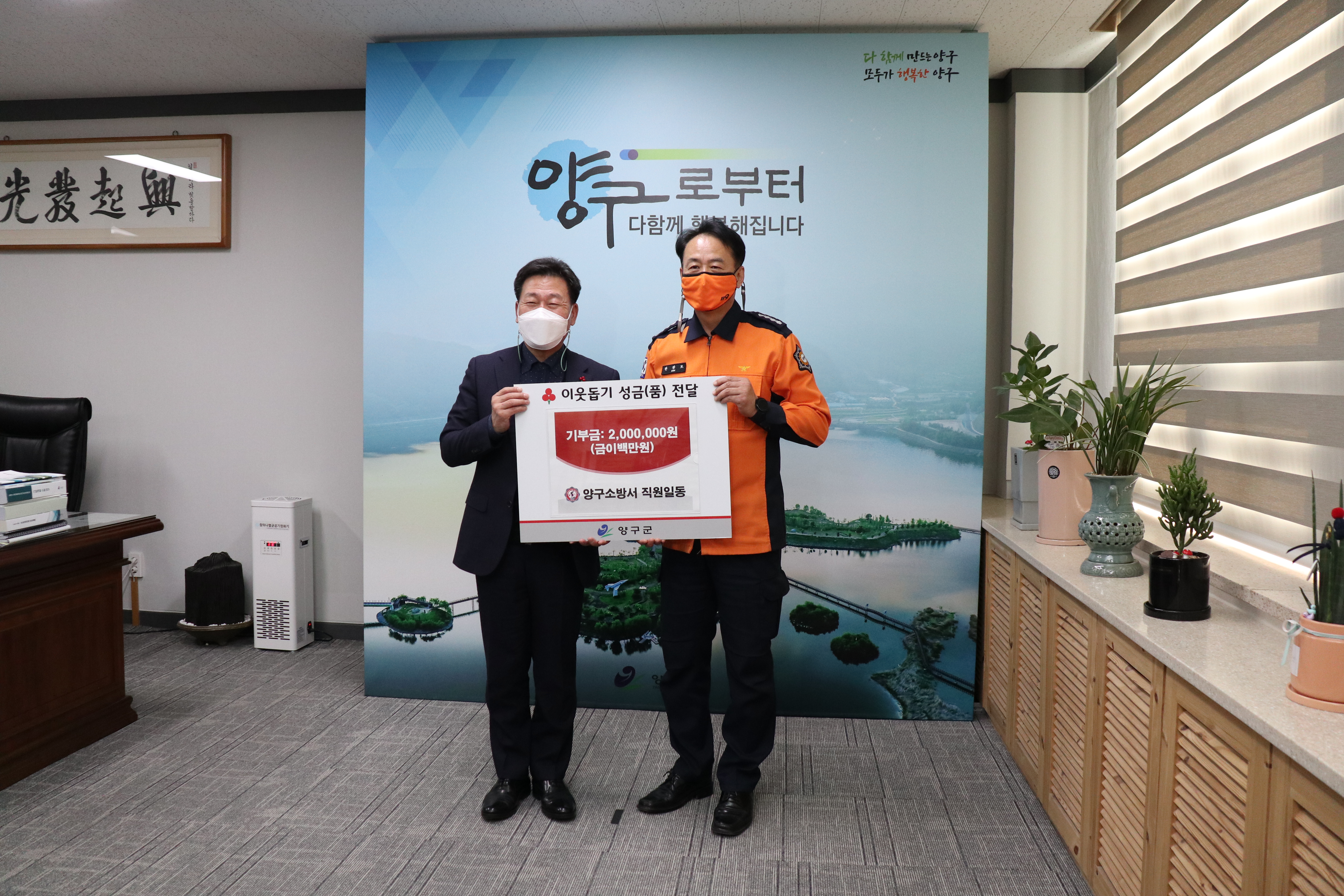 1월 14일 양구군청에 설맞이 이웃돕기 성금으로 200만원을 전달했습니다.