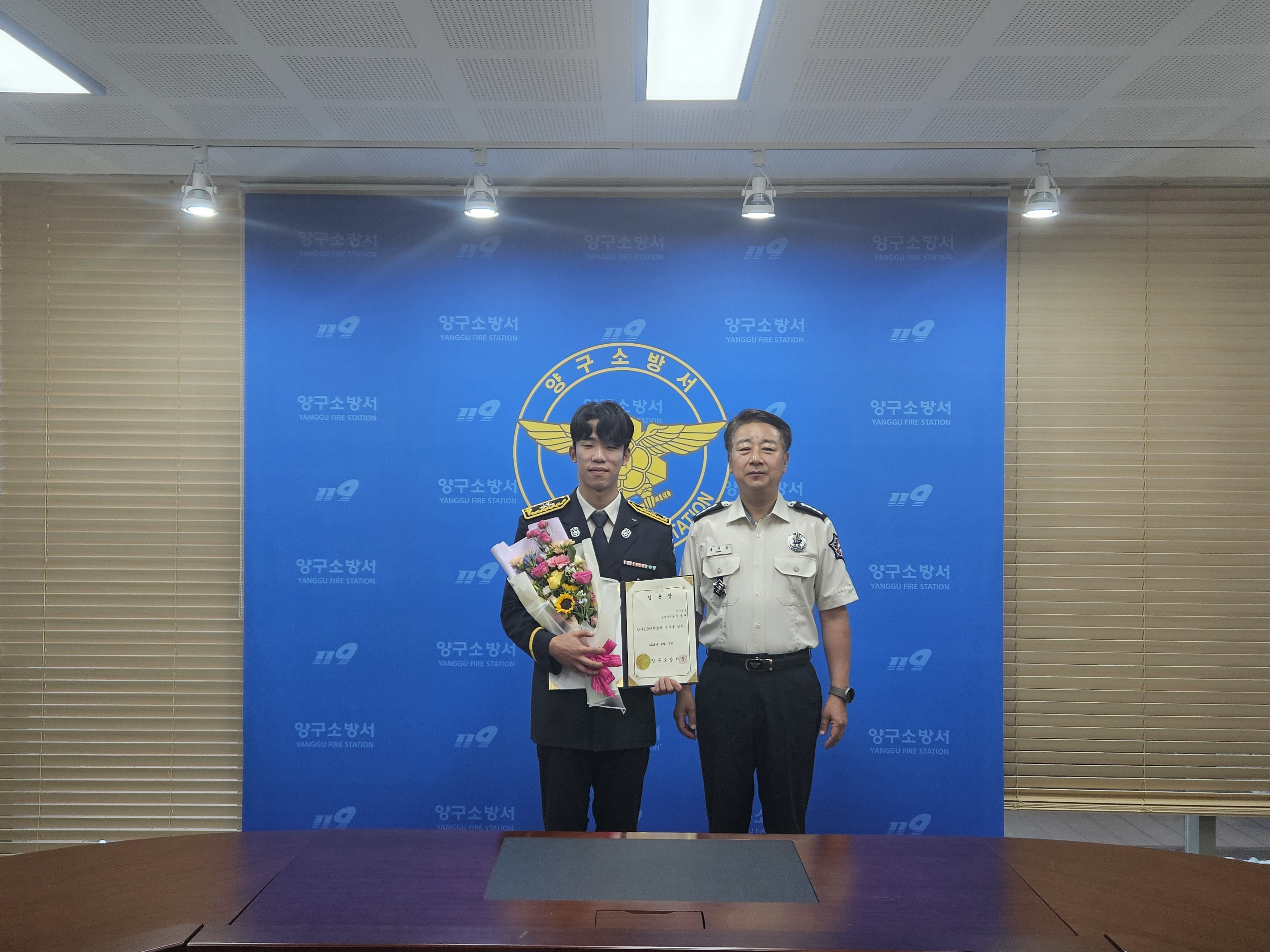 8월 7일 오전 9시 양구소방서 소회의실에서 신규 임용자 임용식을 개최했습니다.