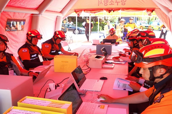 이날 훈련은 지진에서 비롯된 대형 화재로 인해 다수 사상자가 발생한 상황을 가정한 가운데 진행됐다. 소방서를 비롯해 양구군 긴급구조지원기관 등 16개 기관(단체) 249명의 인원과 장비 51대가 동원됐다.
