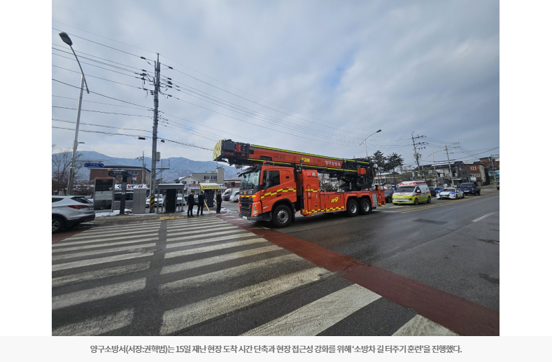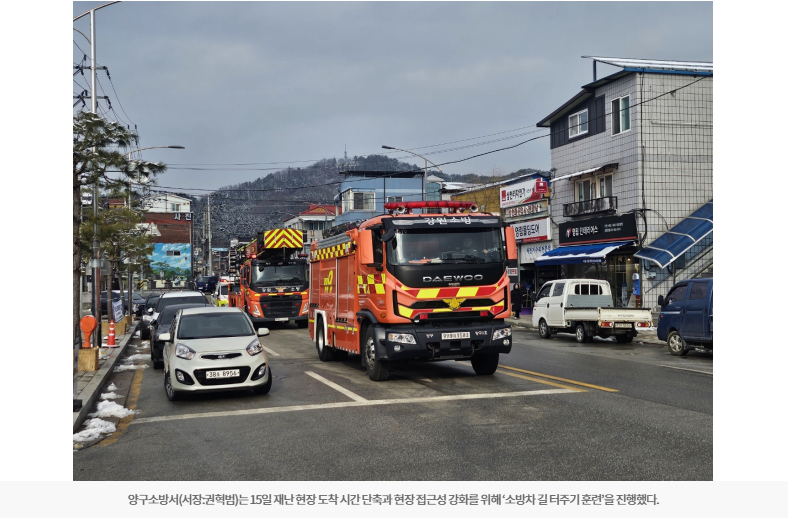 [강원일보] 양구소방서, 실전형 길 터주기 훈련으로 출동 환경 점검