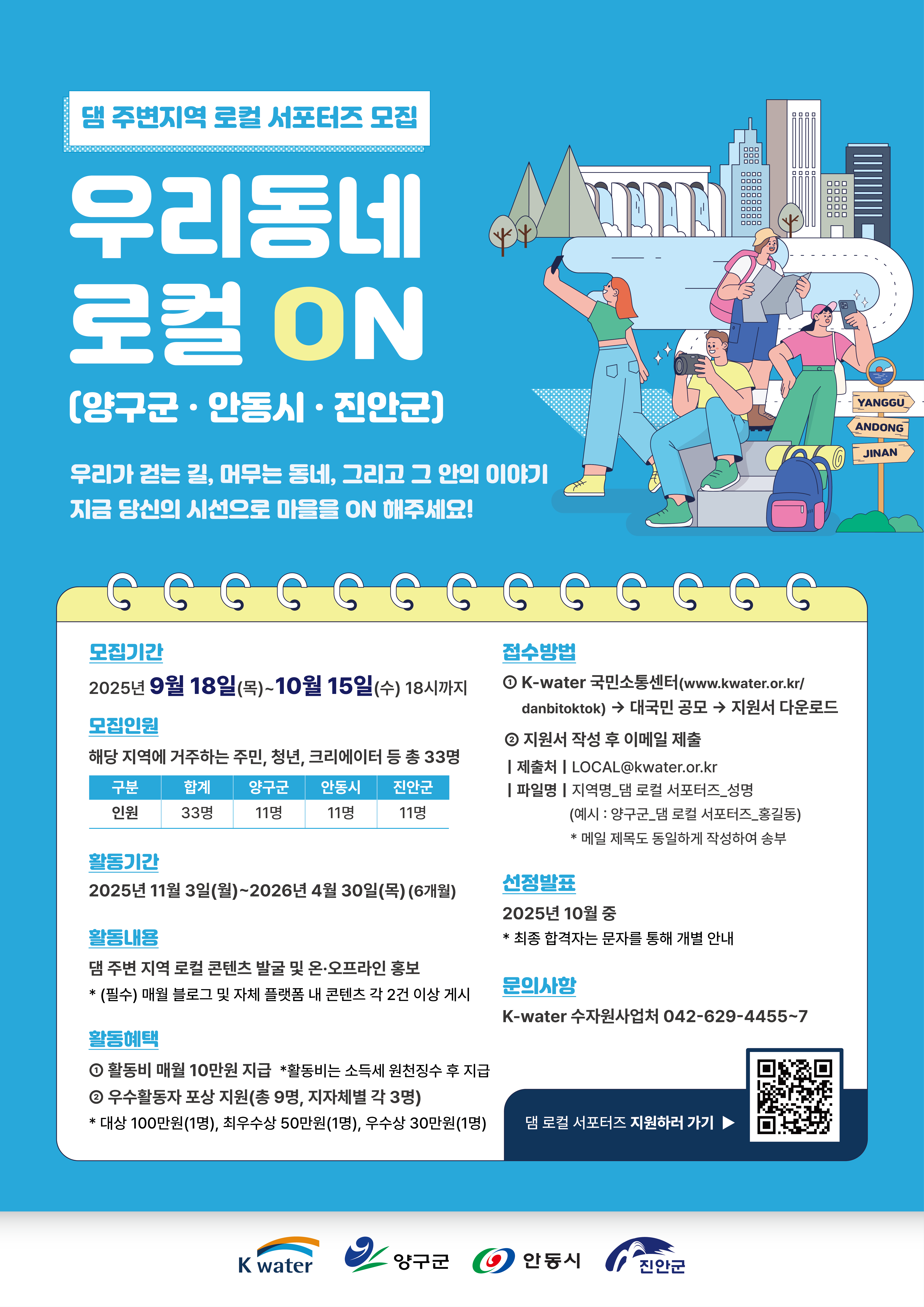 K-water 댐 주변지역 로컬 서포터즈 모집(~10.15)