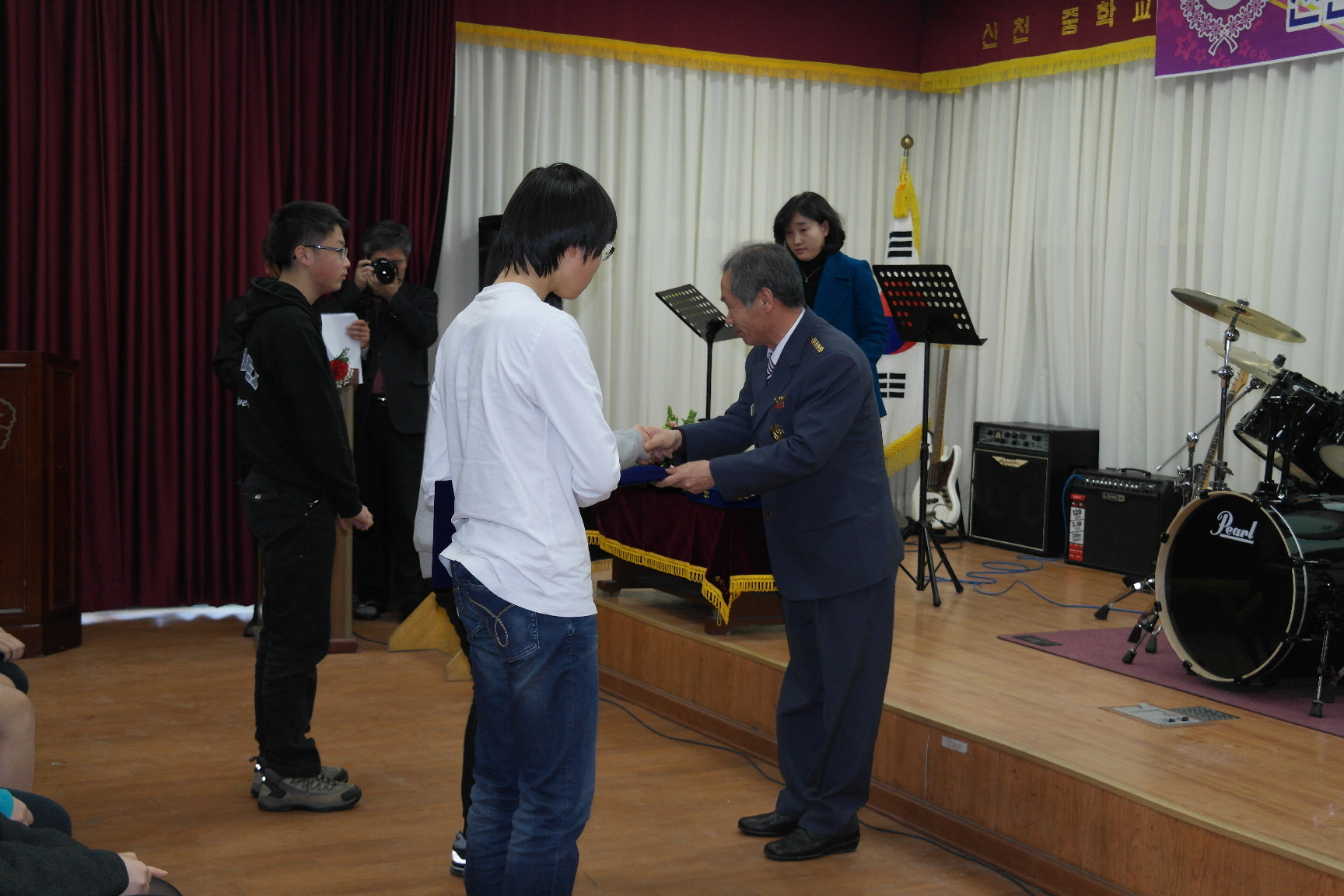 한반도의용소방대(대장 : 금중경)에서는 신천중학교 졸업식을 맞이하여 장학금을 전달하였습니다.