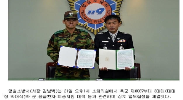 영월소방서ㆍ육군 제8087부대 MOU체결(영월신문 2면)