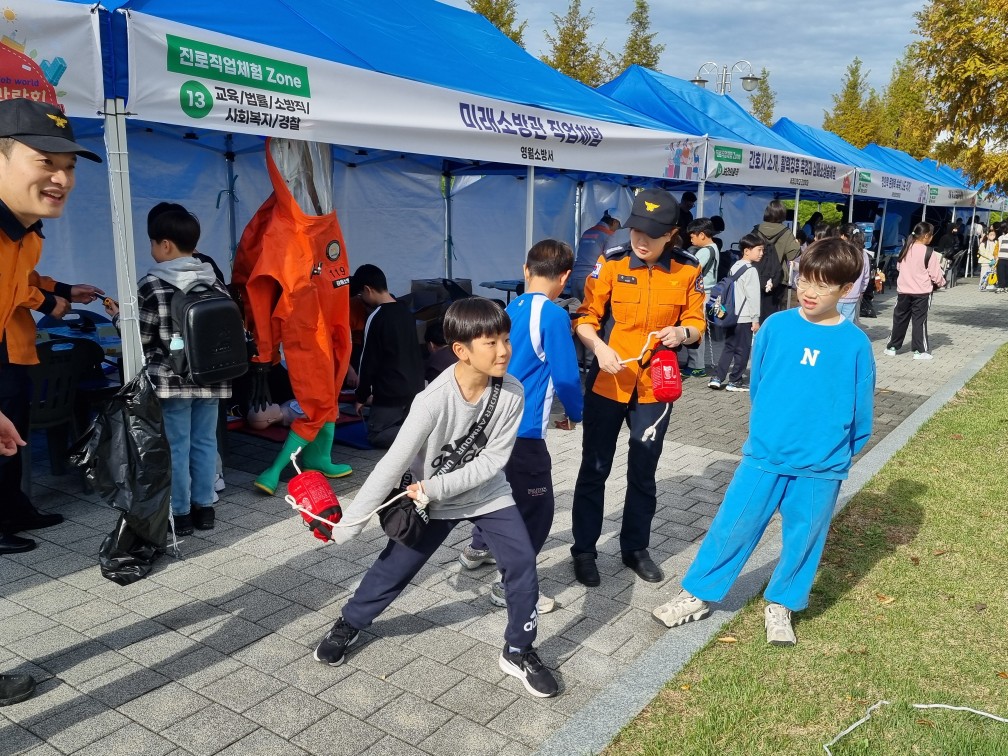 영월소방서(서장 김동훈)는 지난 21일 영월스포츠파크에서 열린 ‘영월진로박람회’에서 미래 소방관 직업체험 부스를 운영했다.