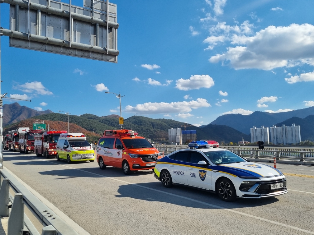 소방서를 출발해 하송사거리, 영월터미널, 서부시장, 영월지구대, 동강대교를 거쳐 귀소하는 과정으로 진행됐다.
