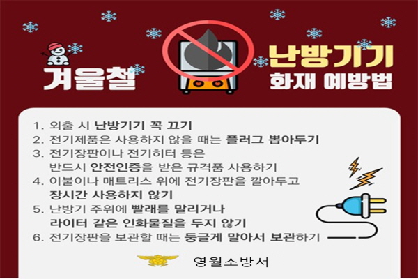 영월소방서, 화재 위험 3대 겨울용품 안전점검 당부