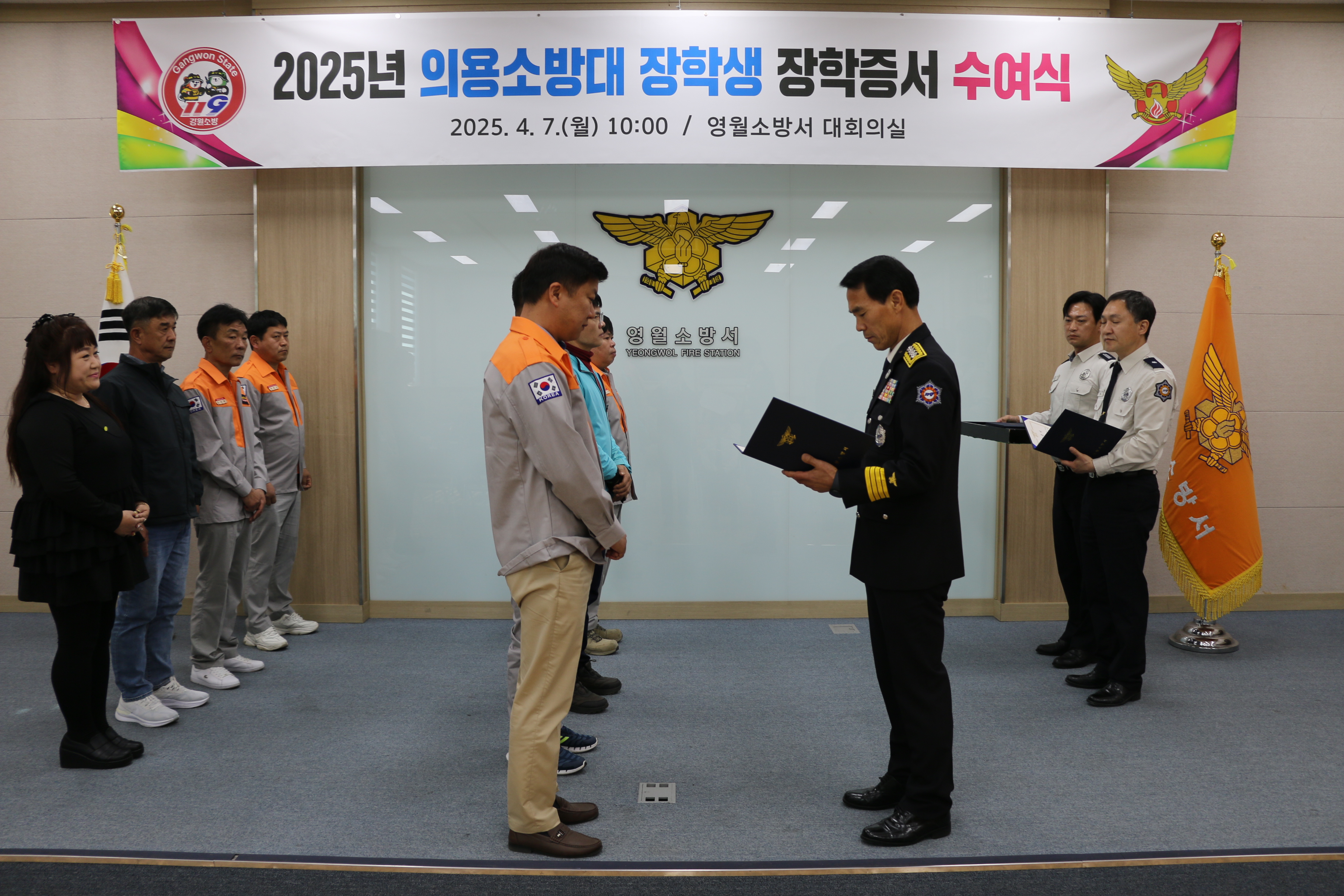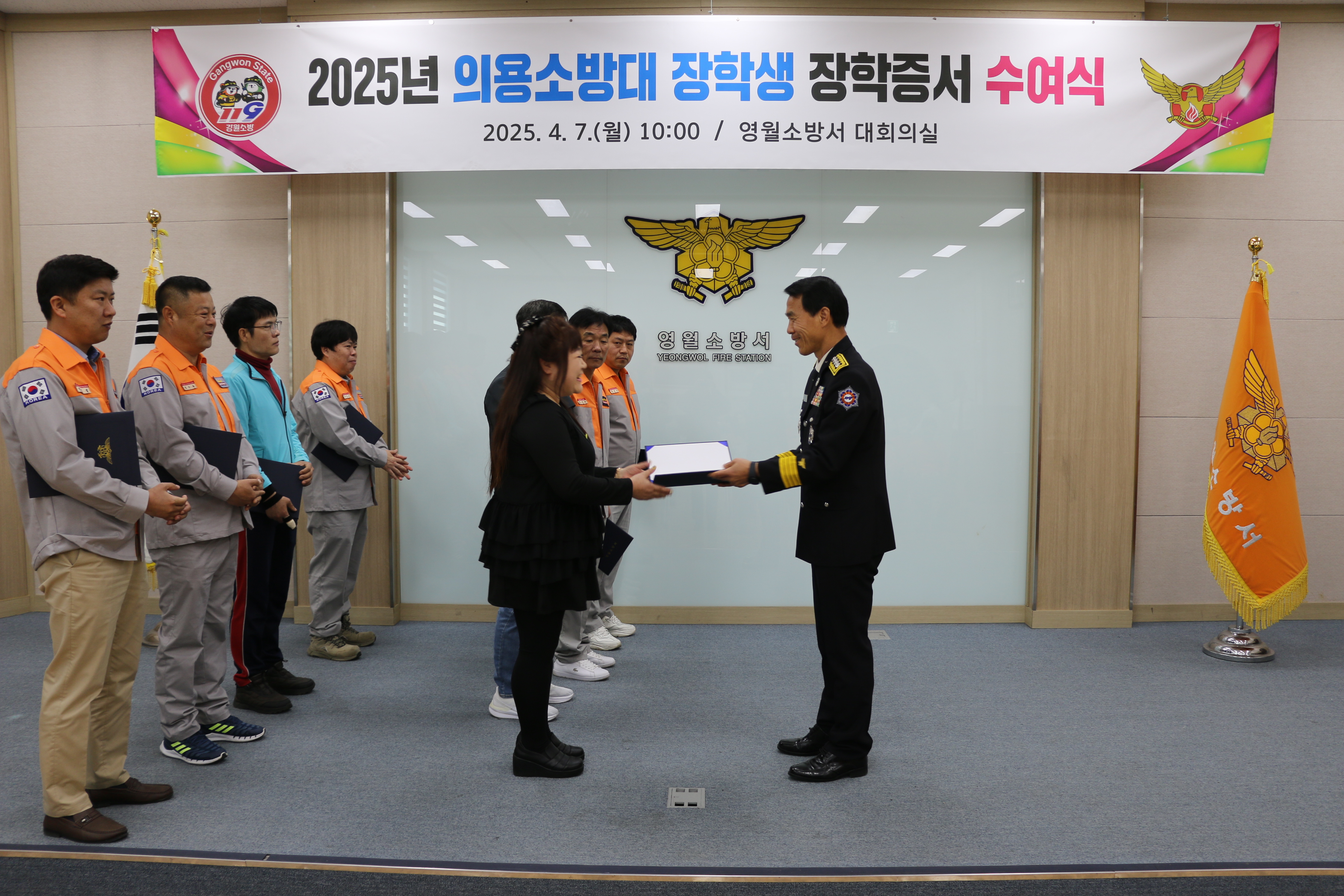 | 1274 | 의용소방대 장학생 장학증서 수여식 (25년 4월 7일) | 영월 | 2025-04-07 | 311 | |