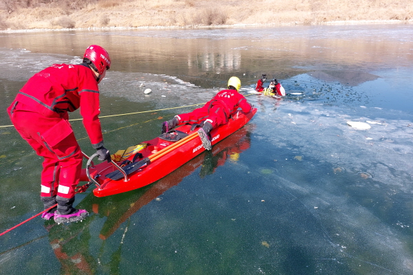 □ 이 훈련은 얼음 물에 빠진 구조 대상자를 수색ㆍ구조하는 전문 훈련과정으로 해빙기 사고 수습 및 현장 대응 능력을 향상하고자 마련됐다.