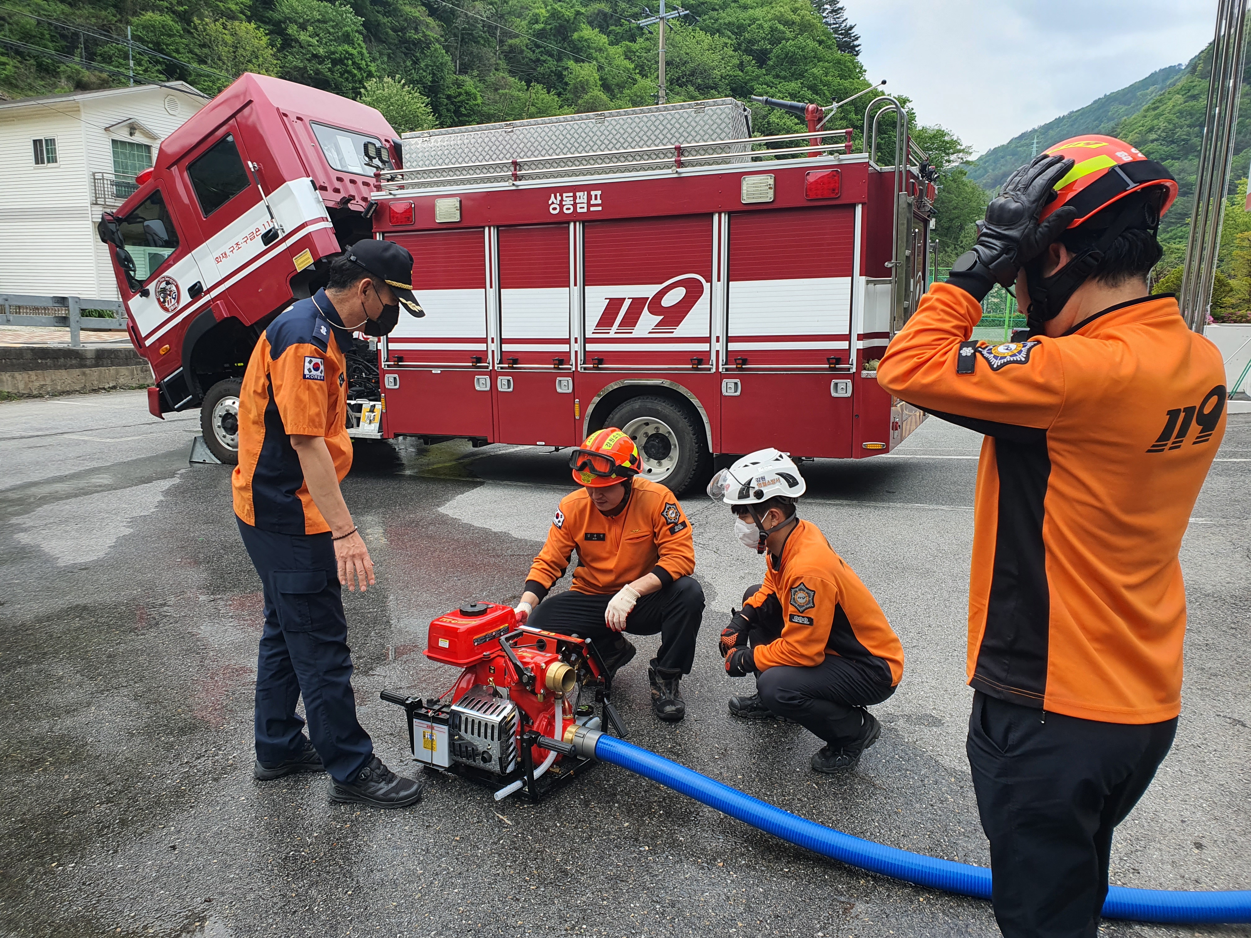 □ 주요 내용은 ▲진공펌프 활용 흡ㆍ배수(비상시 포함) ▲동력소방펌프(수중펌프) 조작 및 흡ㆍ배수 ▲전기톱ㆍ동력절단기ㆍ글라인더 장비 숙달 ▲여름철 수난사고대비 특별 구조훈련 등이다.