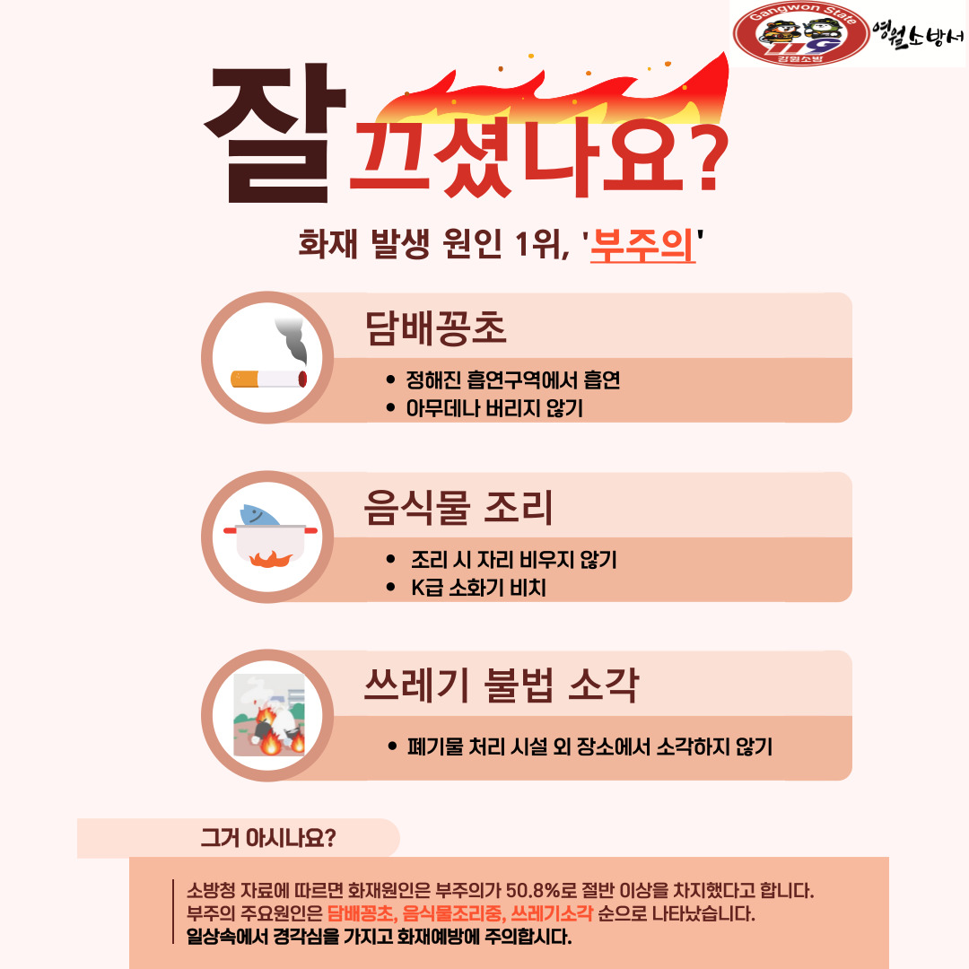[카드뉴스] 부주의 화재 예방 수칙!