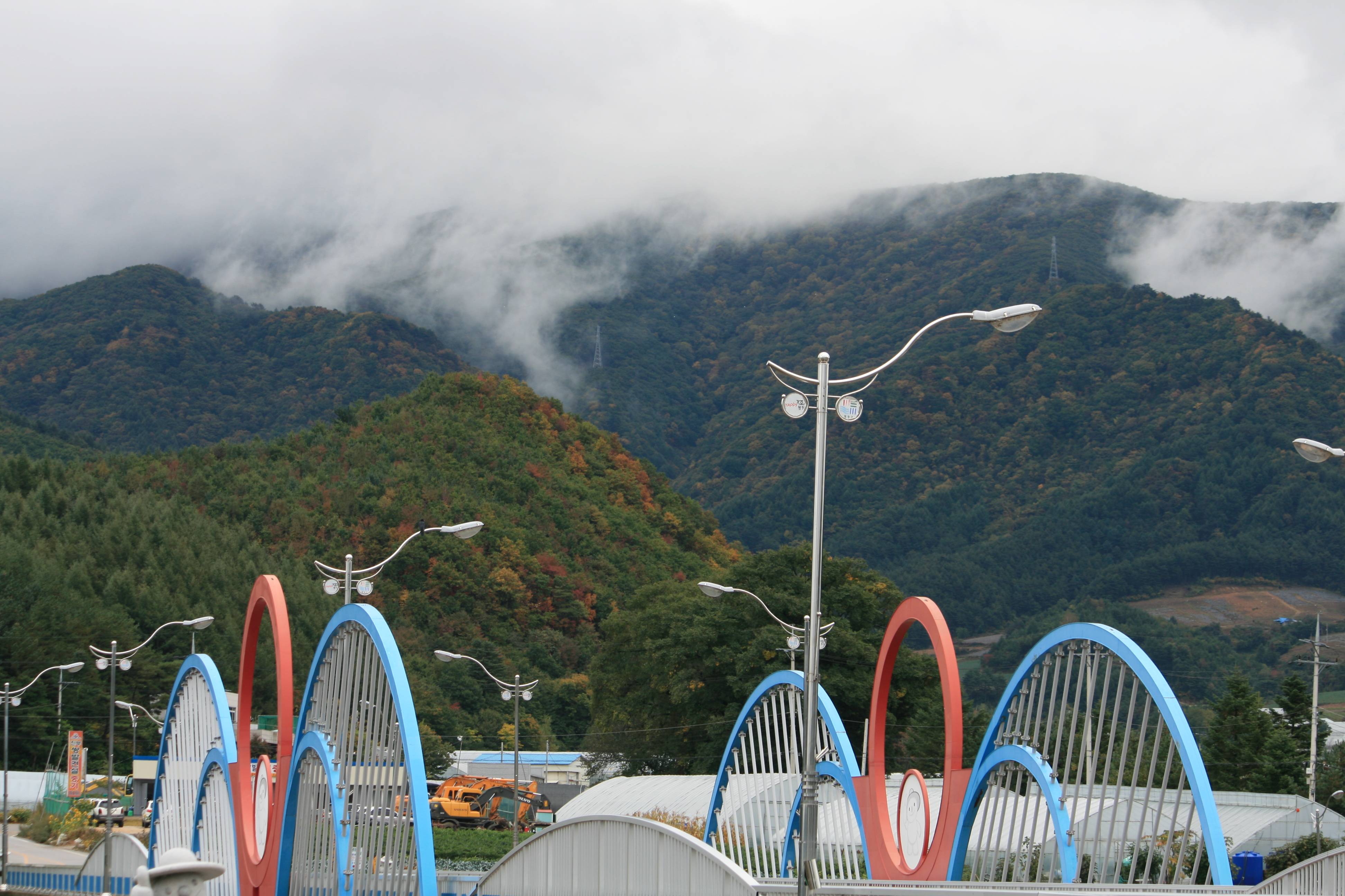 두번째 사진은 우리 진부119안전센터 앞쪽을 바라보고 찍은 사진입니다. 주변 산들이 빠알간 단풍으로 옷을 곱게 갈아있고 있습니다.