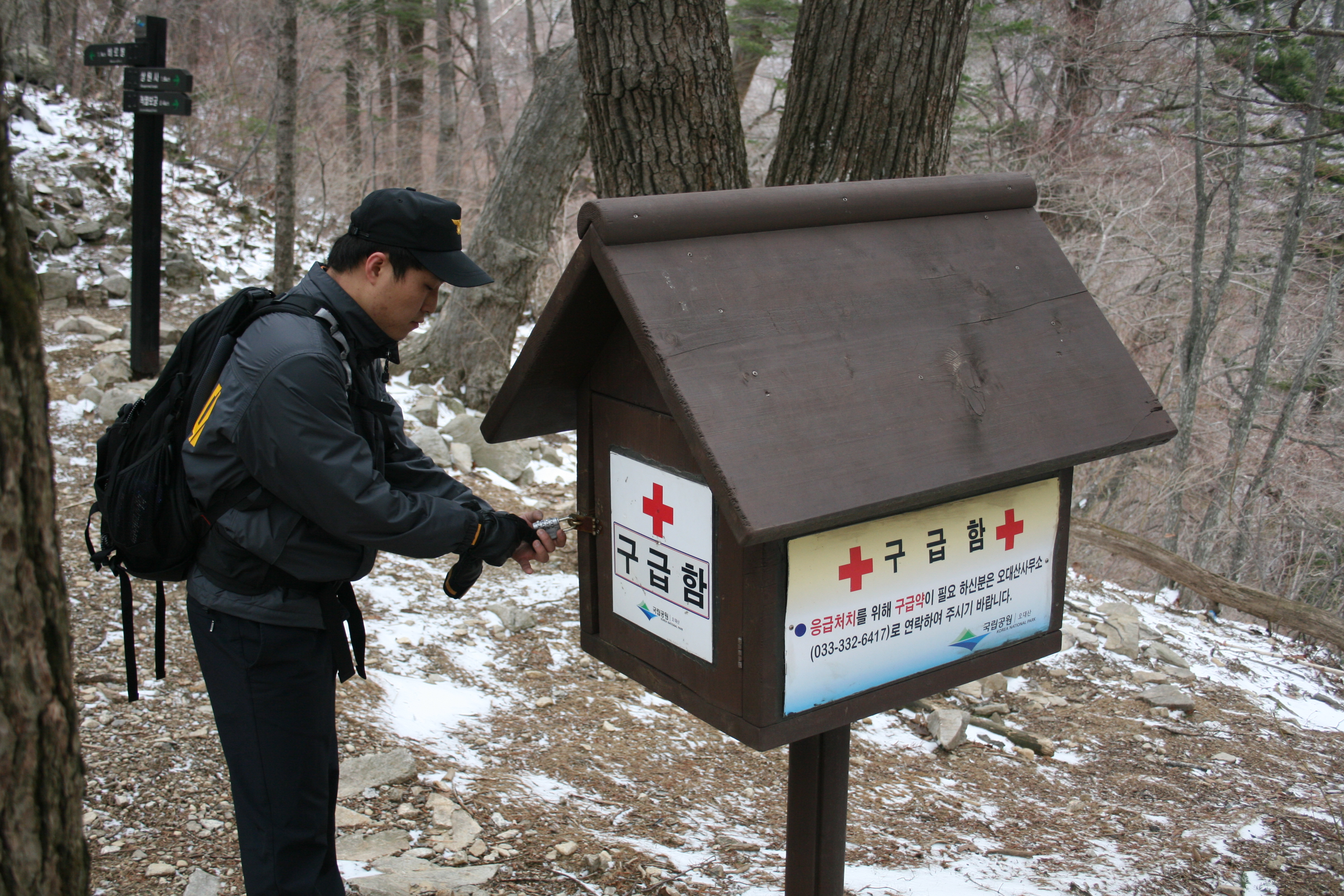 오늘은 오대산일원에 대한 산악사고방지를 위한 기초자료조사차 오대산을 올랐다. 비로봉정상에서 상왕봉구간 헬리포터의 좌표(GPS상)랑 사진도 찍고, 적멸보궁지나 비로봉구간에 설치되어 있는 "구급함"내 응급처치약품과 기본적인 구급기자재는 잘 있는지 확인도 하고, 오전 10시부터 오후 4시까지 5시간에 걸쳐 눈내리는 오대산을 직원1명이랑 같이 마쳤다. 확인코스는 상원사주차장~중대~적멸보궁~비로봉정상~상왕봉~두로령갈림길~상원사주차장이었다. 다음에는 노인봉구간과 동대산구간을 걸으면서 확인해야 겠다....