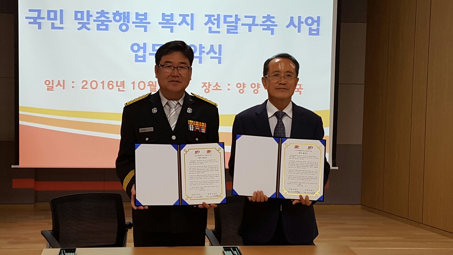 이날 교환하는 업무협약에서는 취약지역 및 취약계층에 대한 밀착형 생활안전․긴급구조활동의 필요성을 인식하고 집배원에게 심폐소생술(CPR) 응급환자 구급활동에 대한 교육을 실시하는 등 집배네트워크가 양양군 대민접촉의 첨병 역할을 함으로써 각종 안전시스템을 구축하고 운영하는데 필요로 하는 사항을 지원하는 내용이 협약서에 포함되어 상호간 교환되었다.