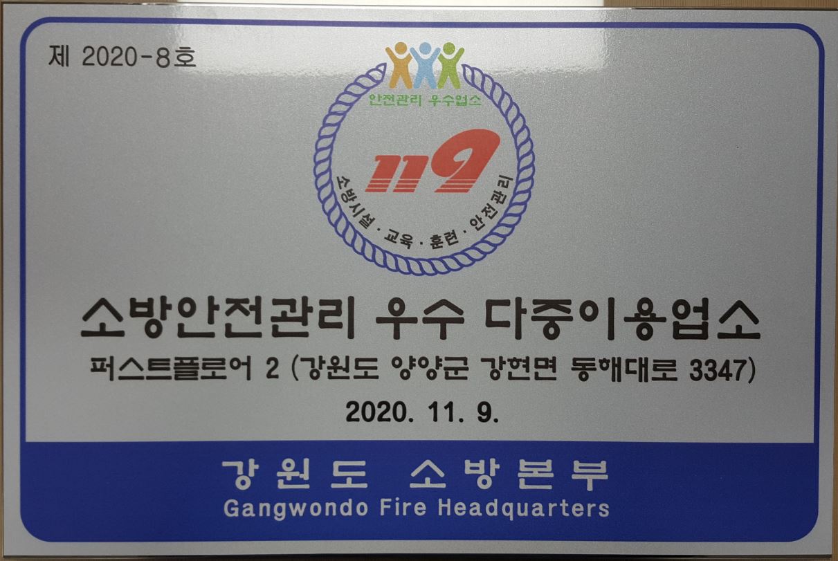 | 335 | 양양소방서, 안전관리 우수다중이용업소 인증 현판식 | 다중 | 2020-11-23 | 1257 | |