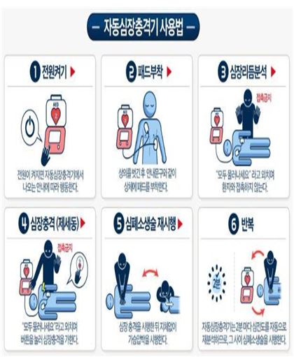 언제 발생할지 모르는 심정지에 대비하여 AED 사용법 숙지 및 위치 파악을 부탁드립니다!