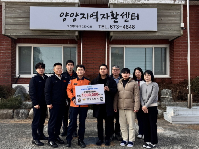 양양소방서(서장 김문하)는 1월 22일 오전 설명절을 맞아 양양지역 저소득계층의 자립, 자활을 지원하는 사회복지기관인 양양지역자활센터를 방문해 어려운 이웃을 위해 써달라며 후원금 100만원을 전달했다.